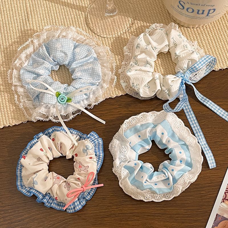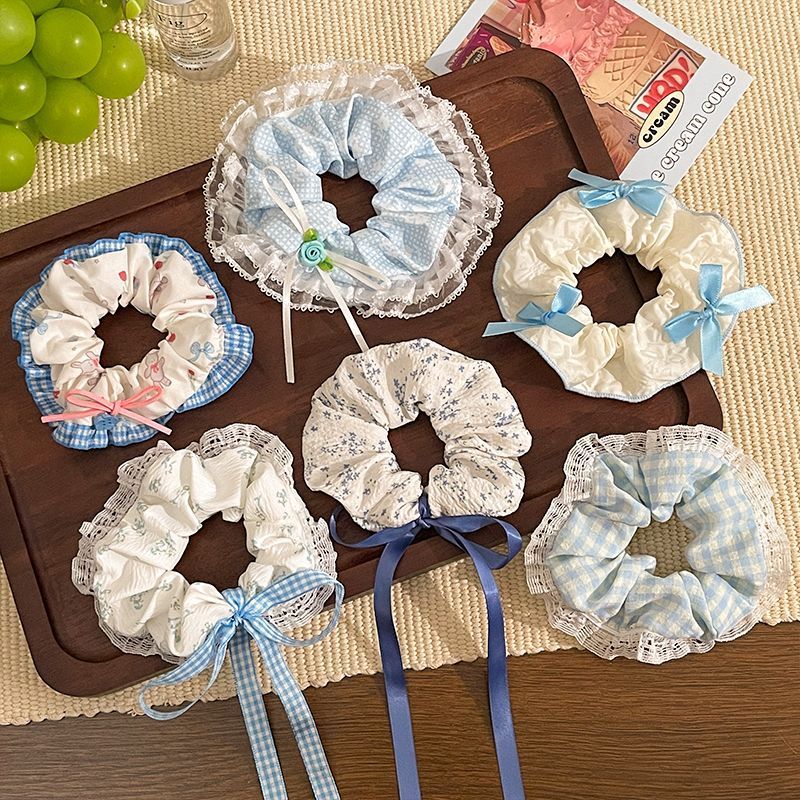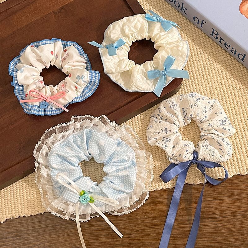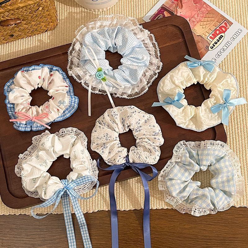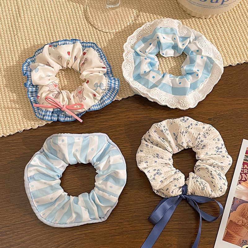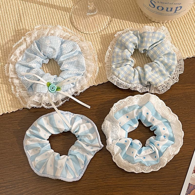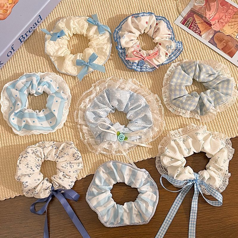 1# blue plaid stitching kitten large intestine hair ring-12cm