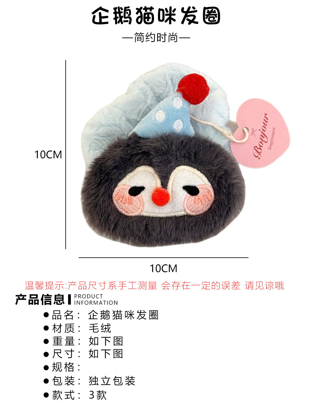 3# plush cat doll hair ring