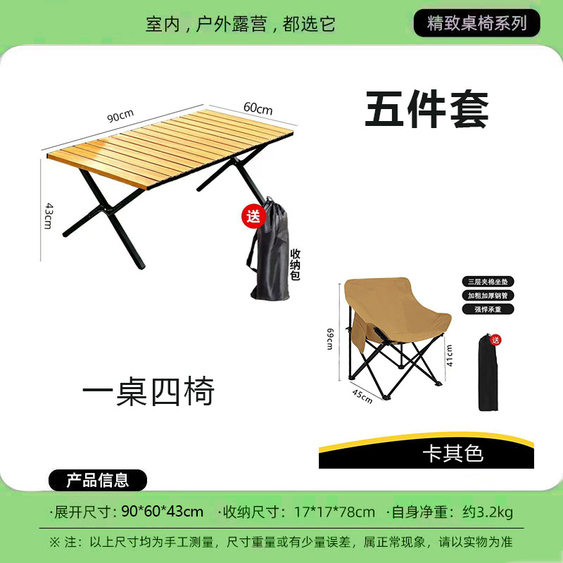 90cml wood grain cross leg table +4 khaki moon chairs