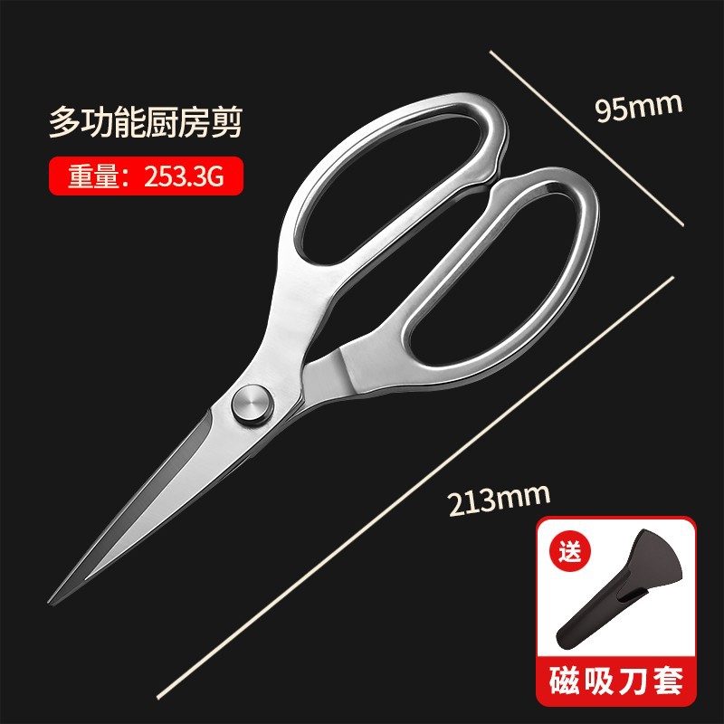 [upgrade thickening] stainless steel curved blade kitchen scissors + magnetic suction scissors sheath