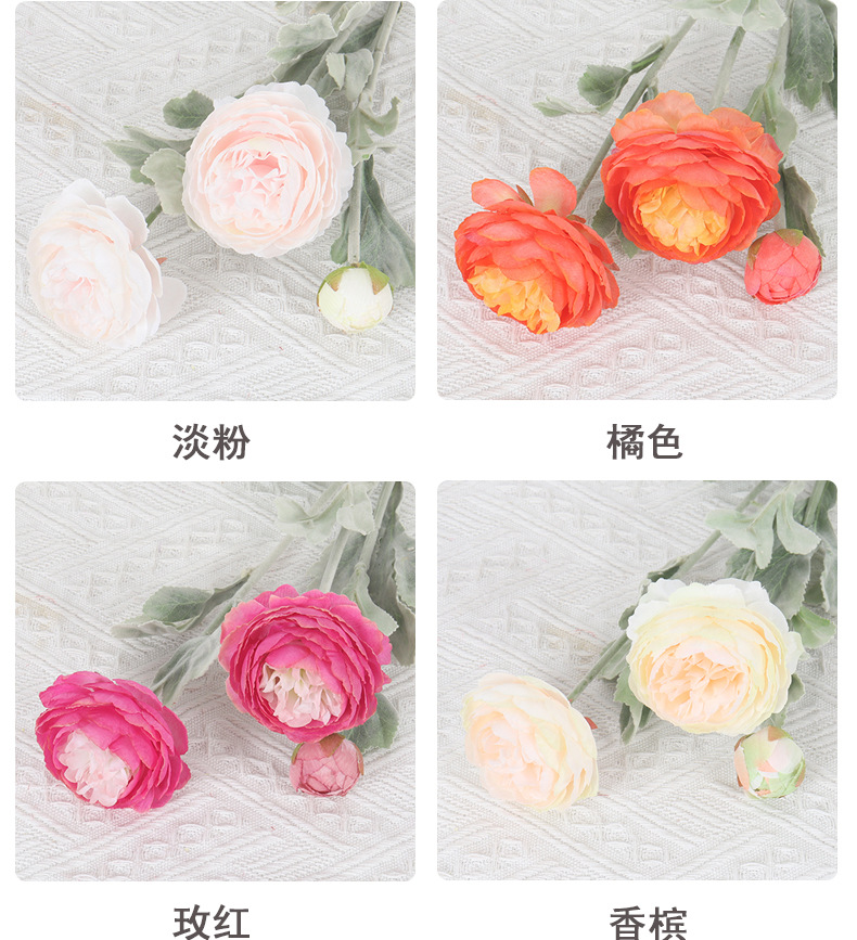 3-head flocking dew lotus wedding simulation flower peony home hotel hallway indoor decorative flower arrangement fake flower nordic style