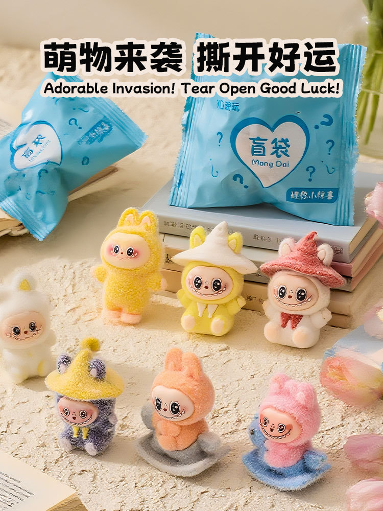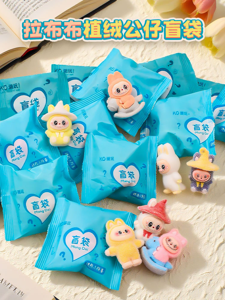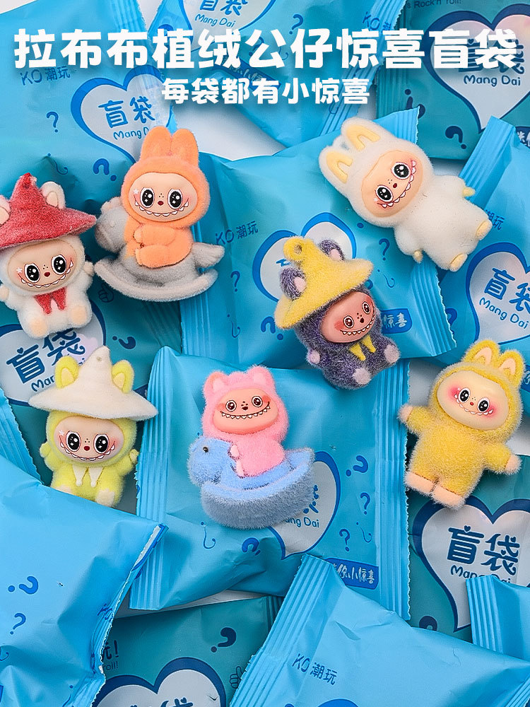 1 flocking soft rubber labubu blind bag (medium size doll)
