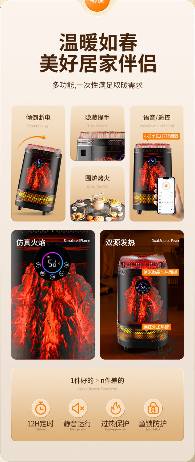 [upgrade bluetooth voice] eco smart power saving + graphene heating element +2200w + table curtain