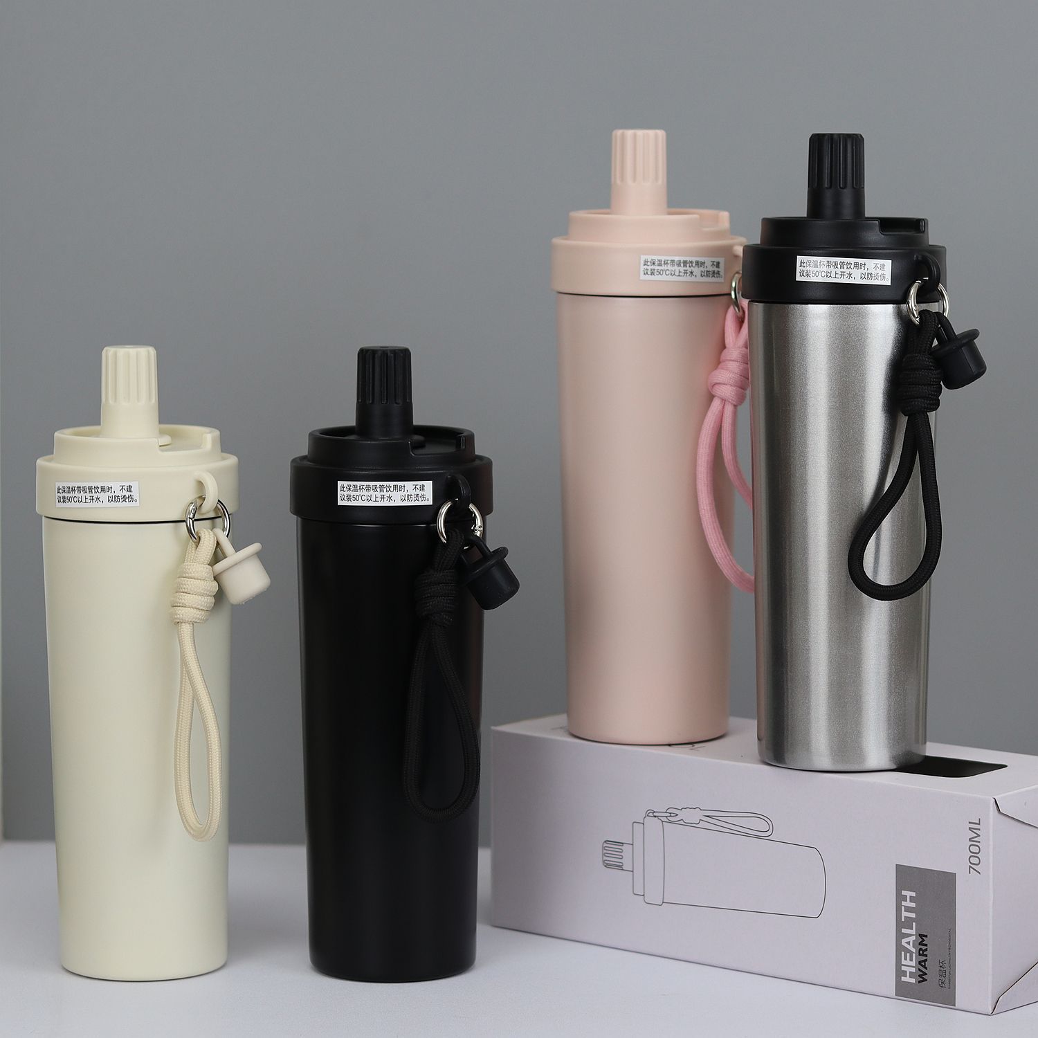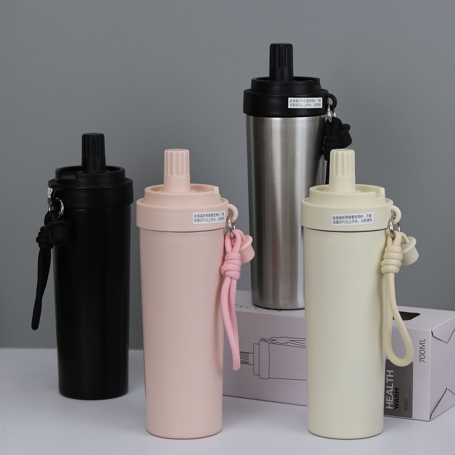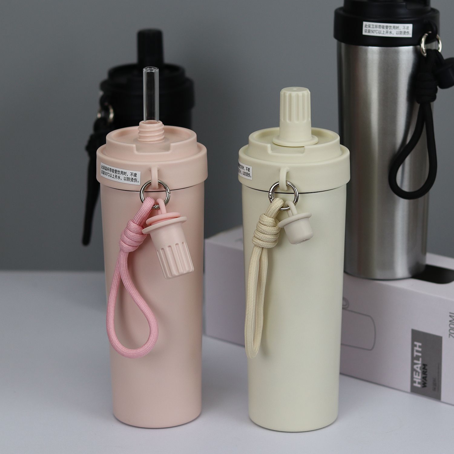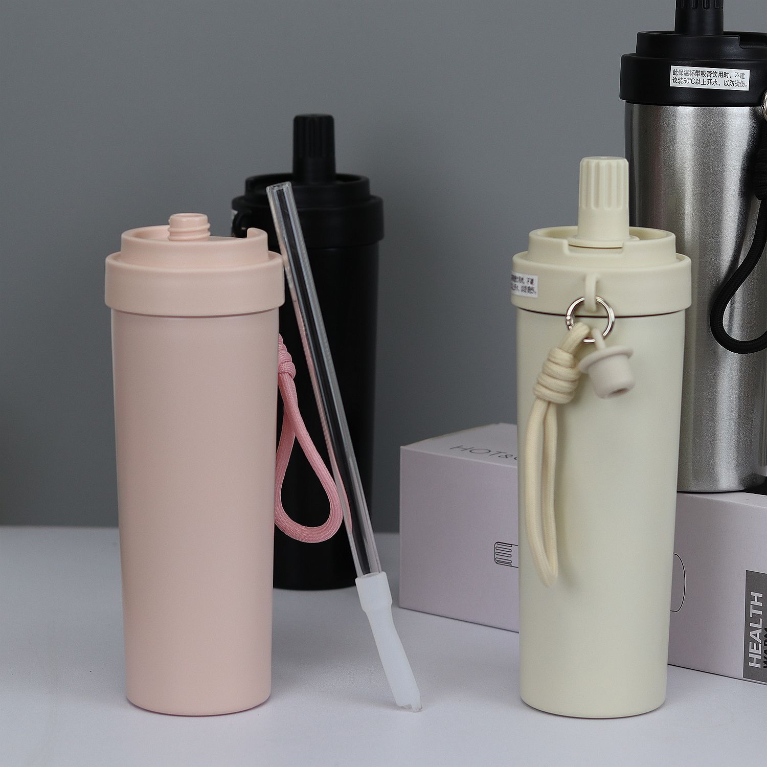 2025 New Product Flexi-Straw Vacuum Flask with High-Borosilicate Glass Straw, Elegant Spray Paint, In Stock in 4 Colors, 50 Pieces Per Case