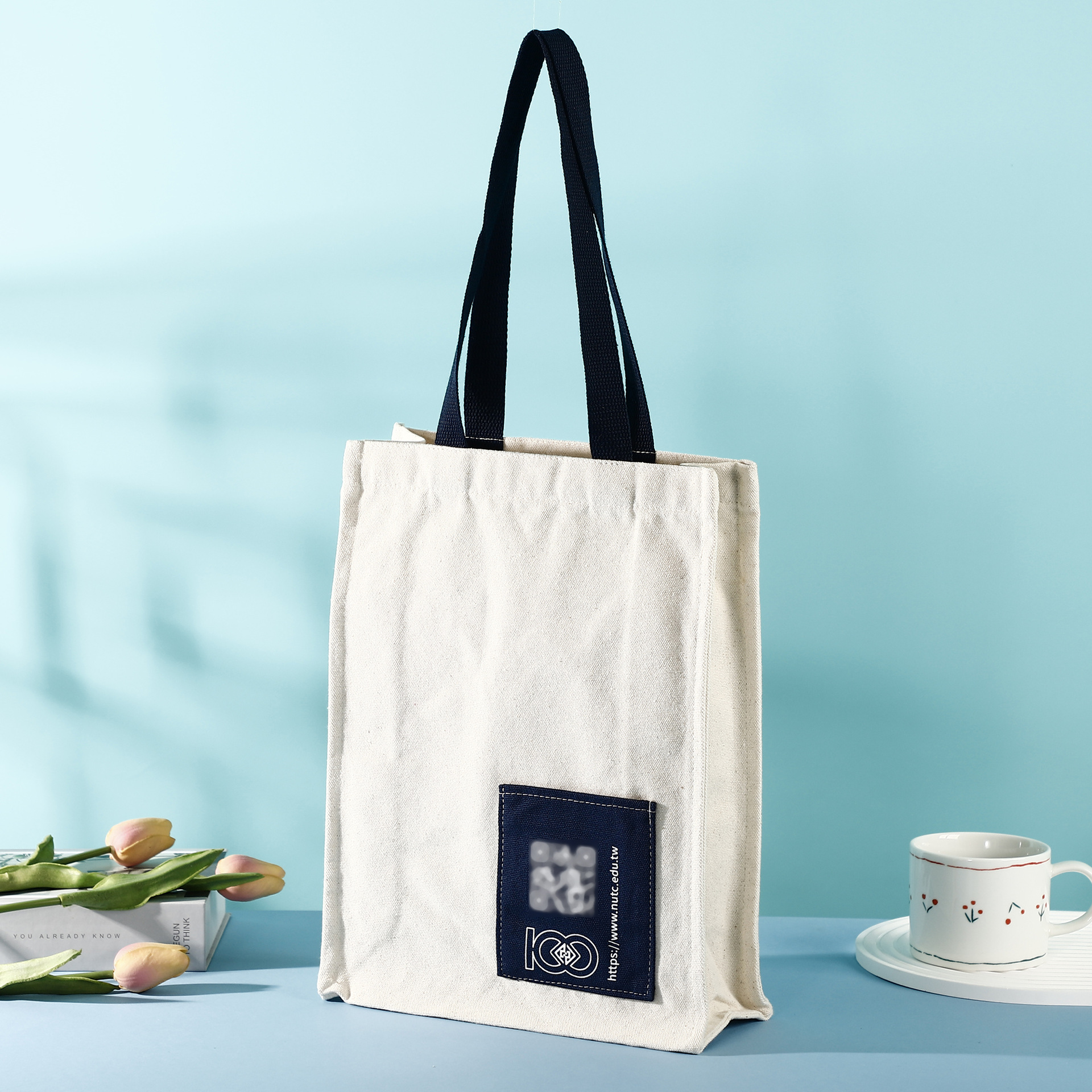 bottom and side portable canvas bag customized university celebration promotional gifts cotton cloth bag love pattern shopping bag