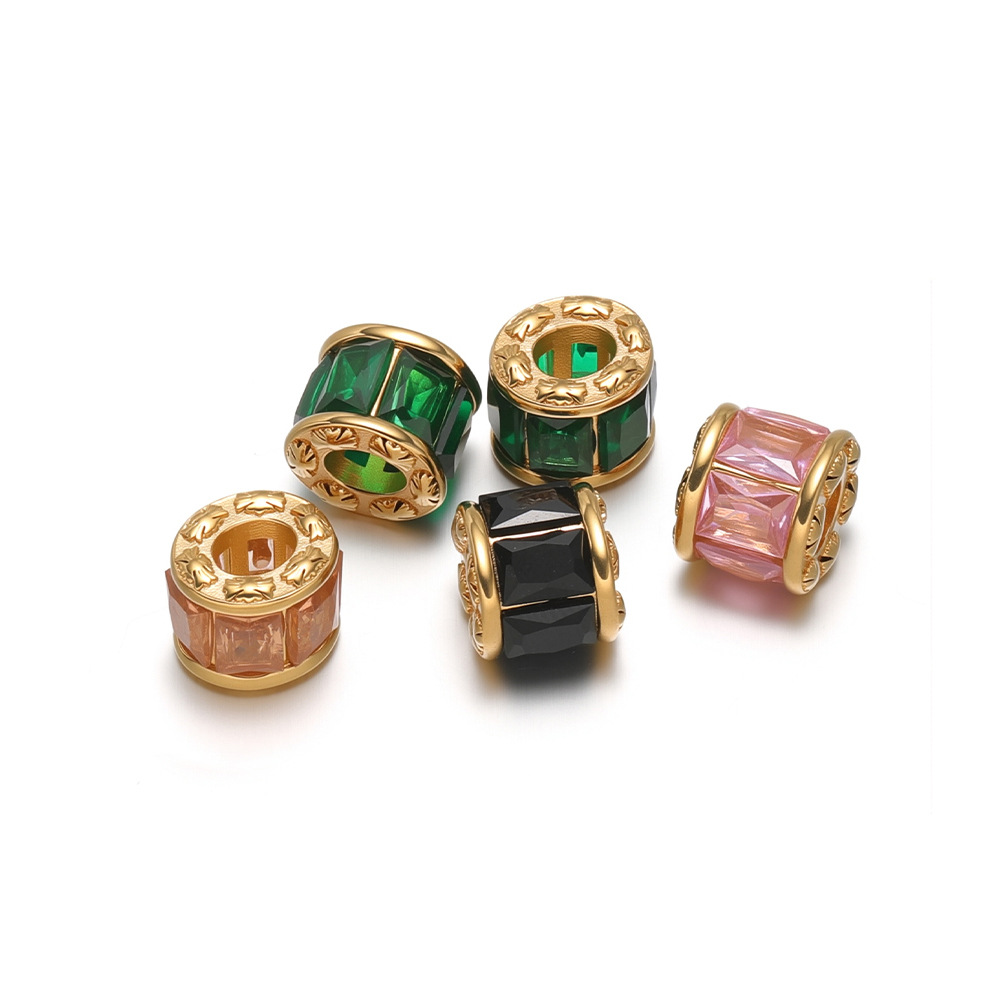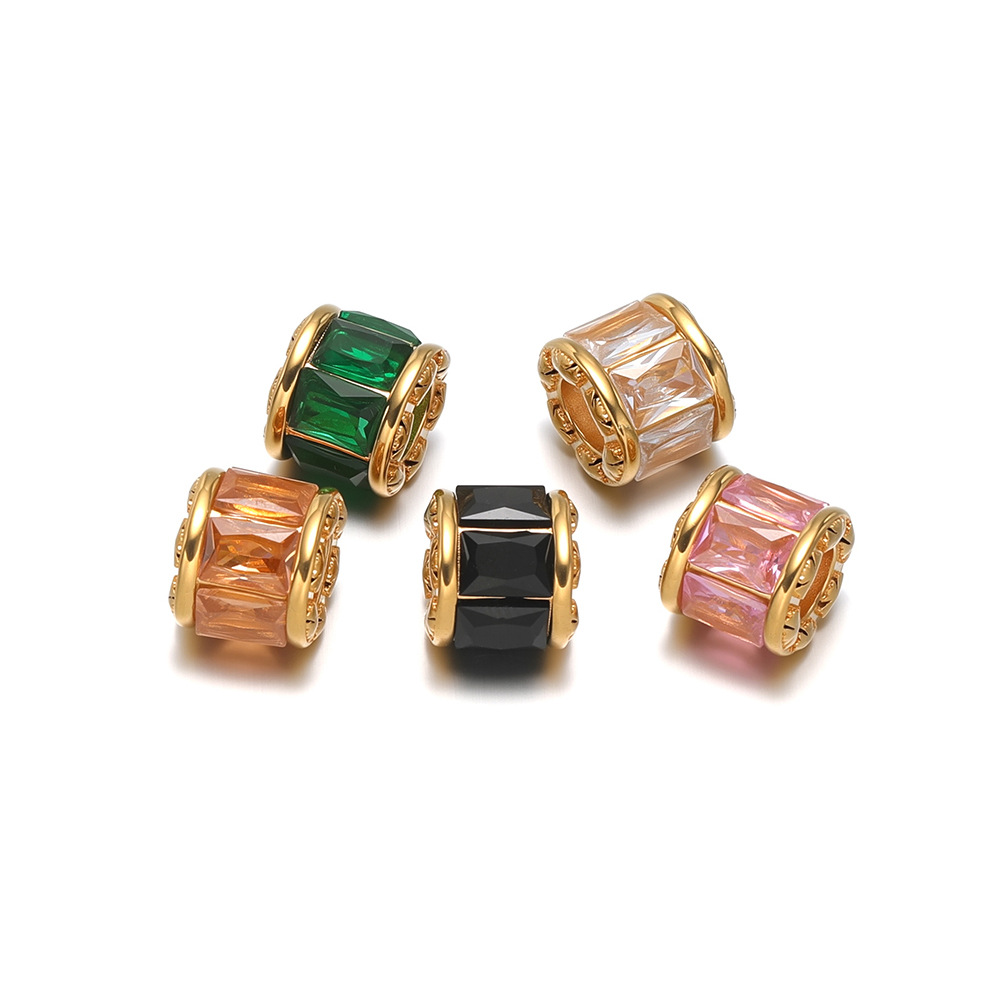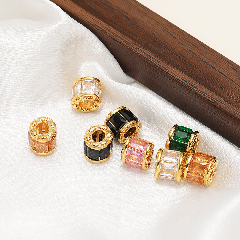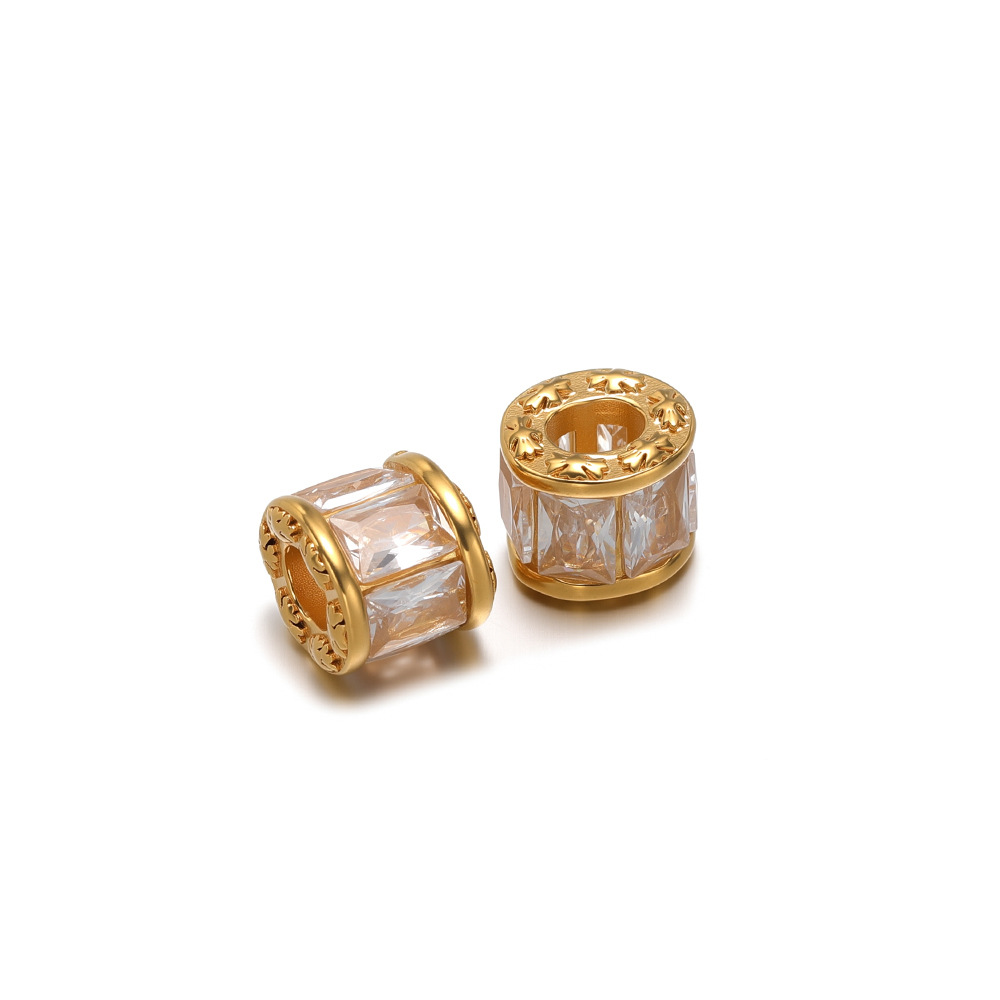 【Product Name】Golden Ellipse Bucket Bead Point Color Zircon