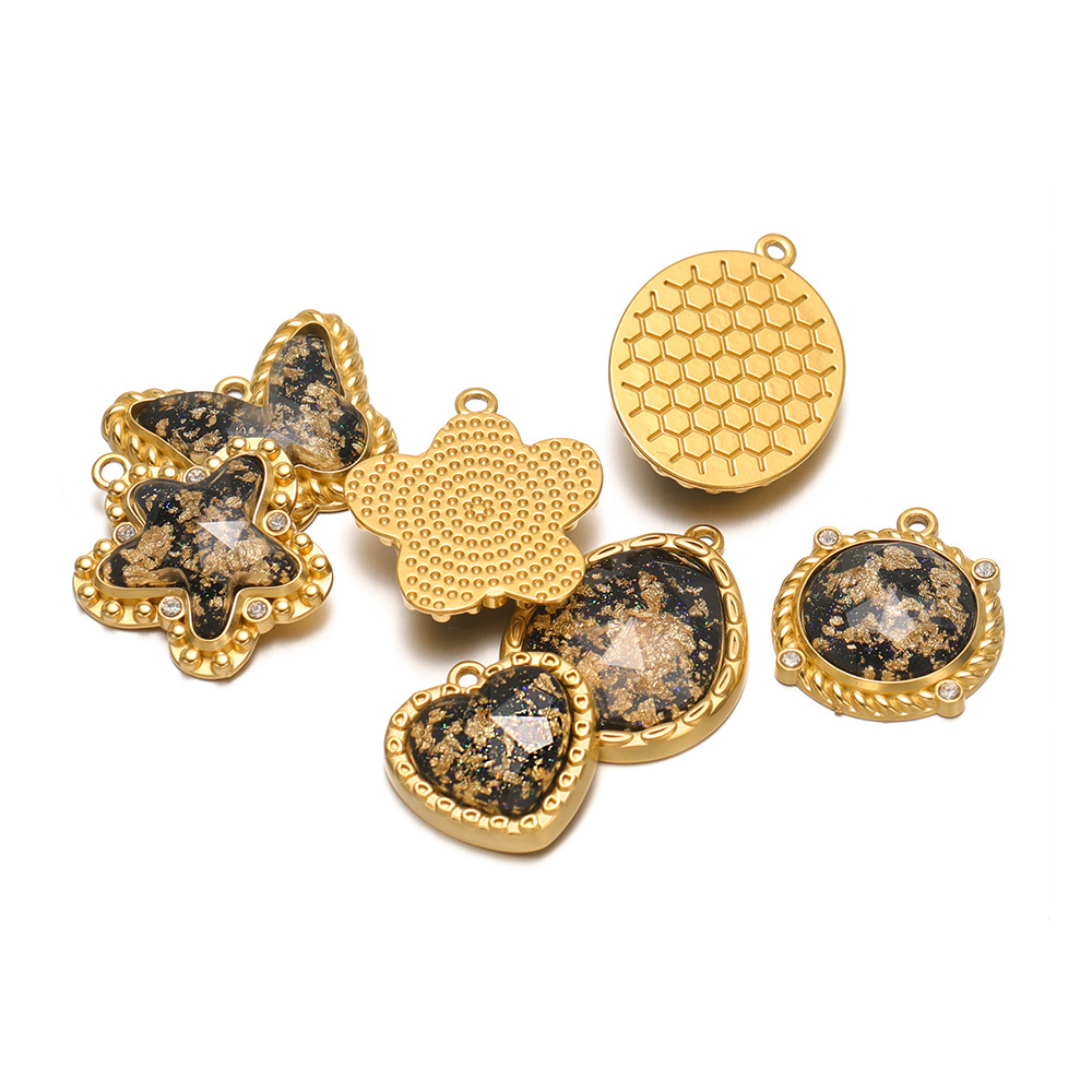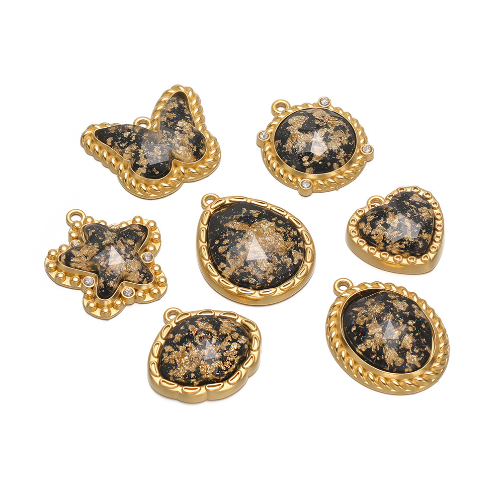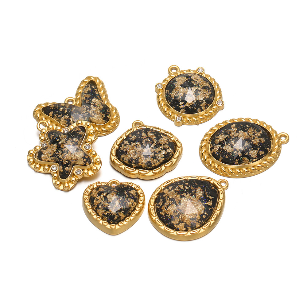 26 * 23.5mm gold five-pointed star spot drill gold black glass