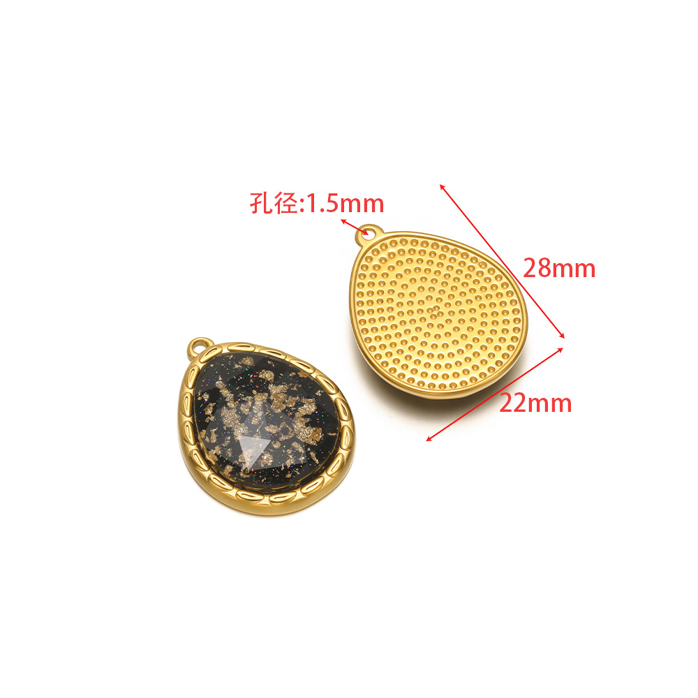 28 * 22mm gold water drop gold black glass