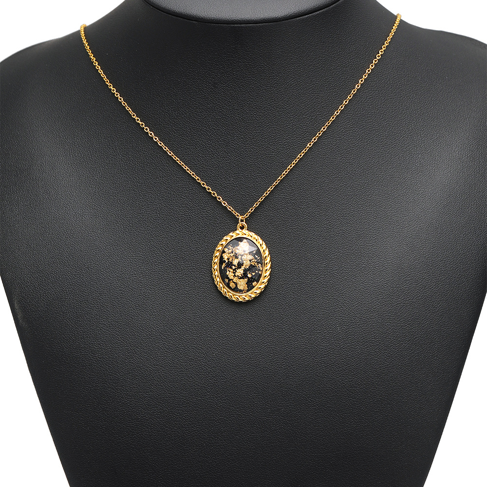 29*21.5mm golden oval black glass