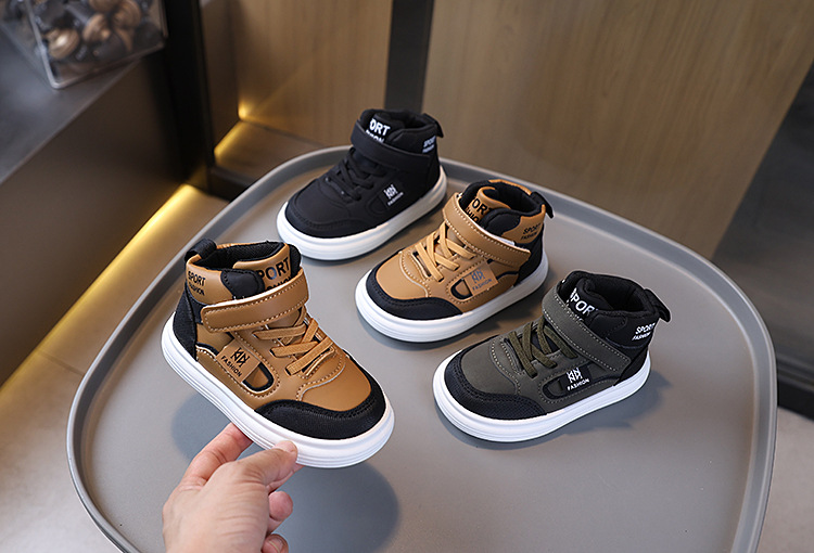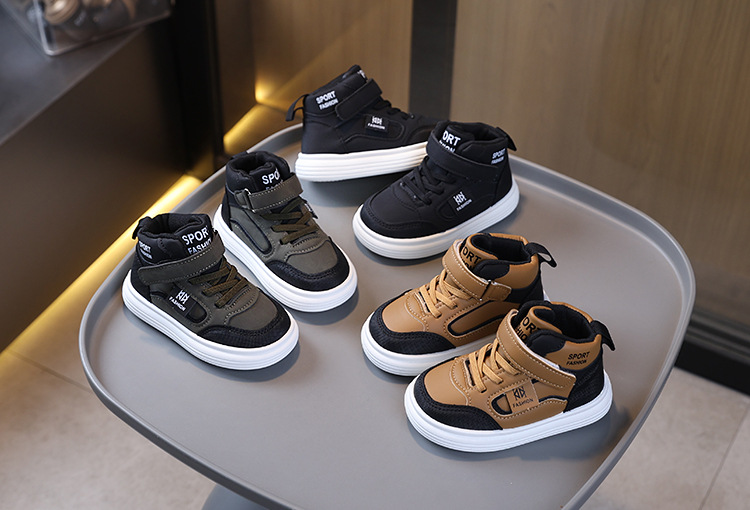 children's sneakers 2025 autumn new solid bottom boy high-top casual shoes board shoes baby girl soft bottom pumps