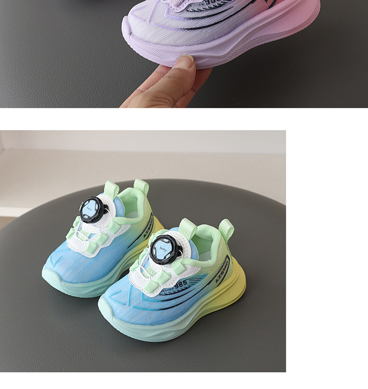 2025 spring and autumn new boys' sports shoes mesh surface soft bottom baby girls' running shoes children rotating buckle basketball shoes