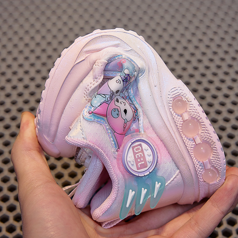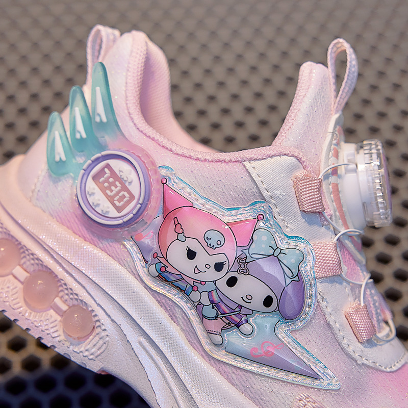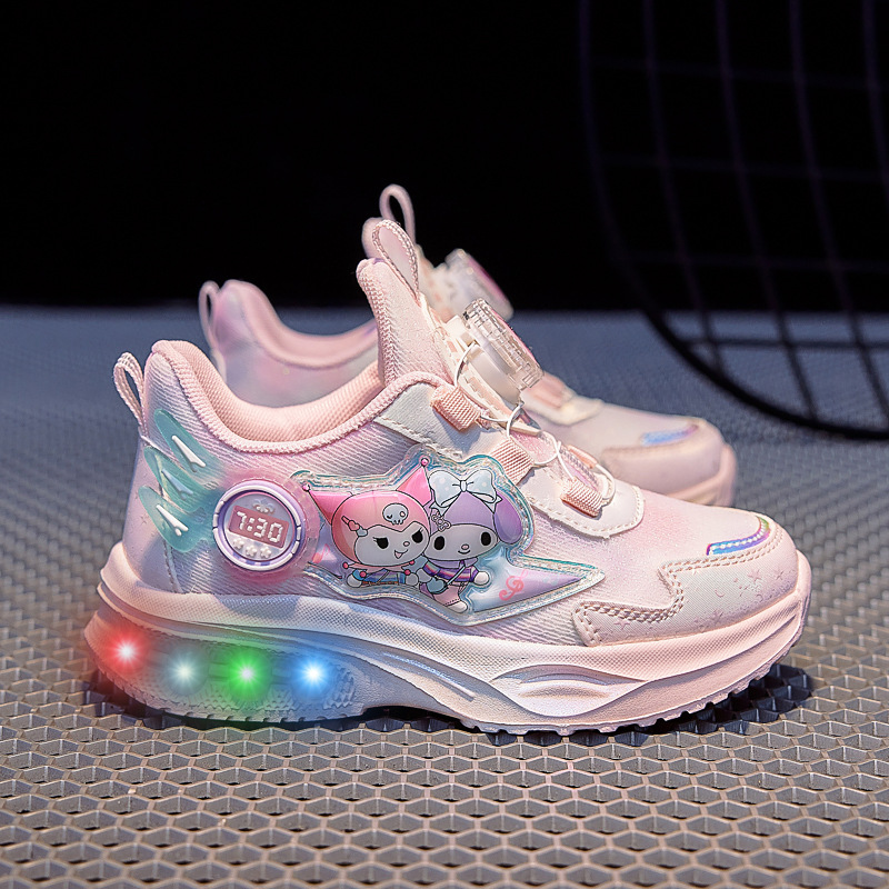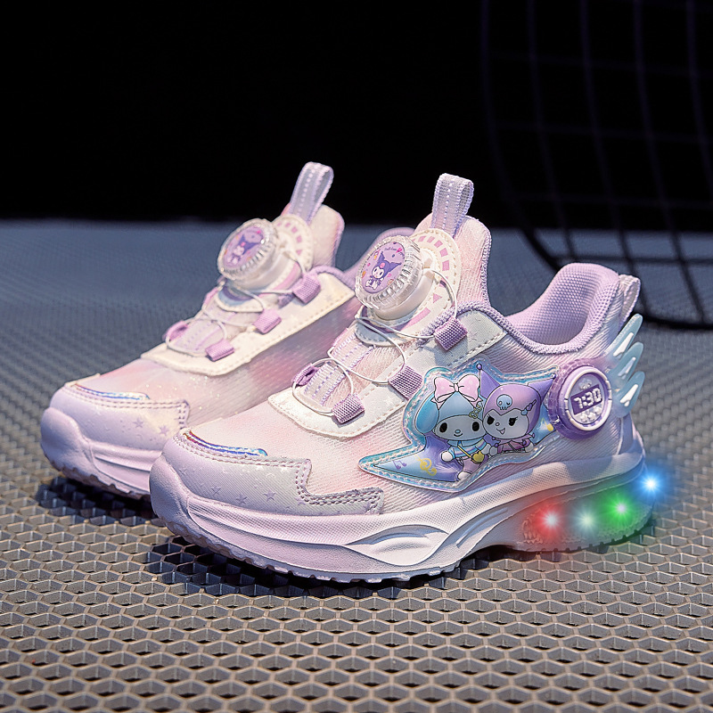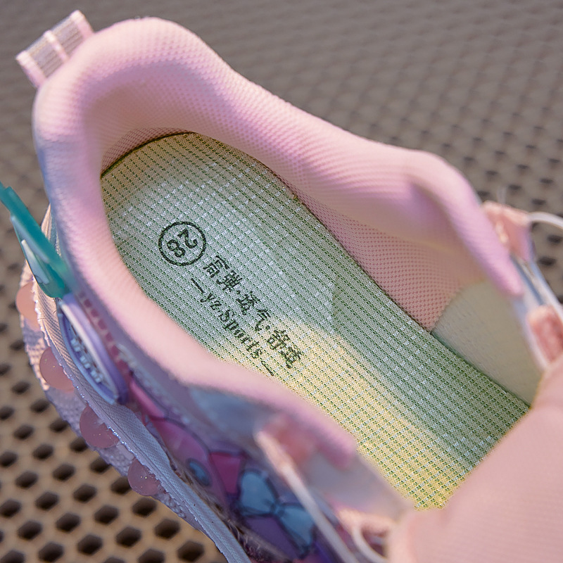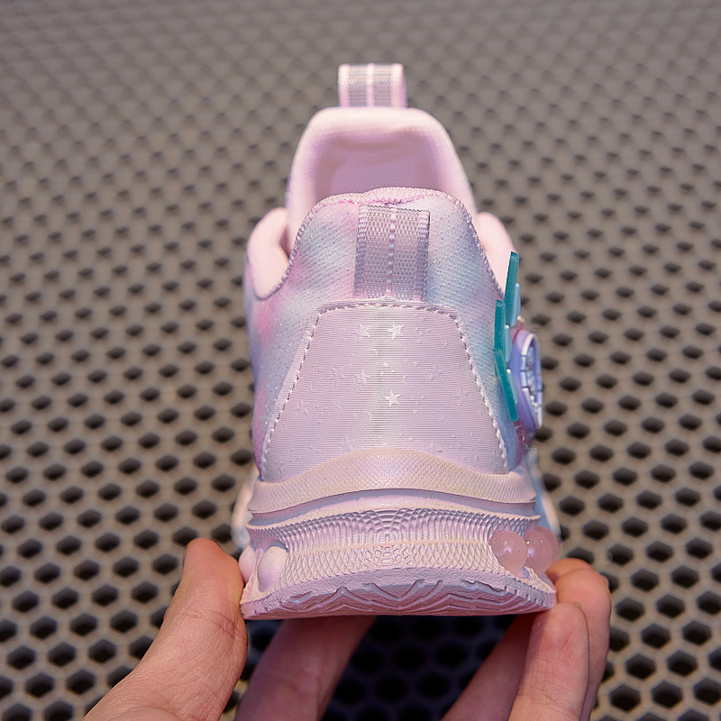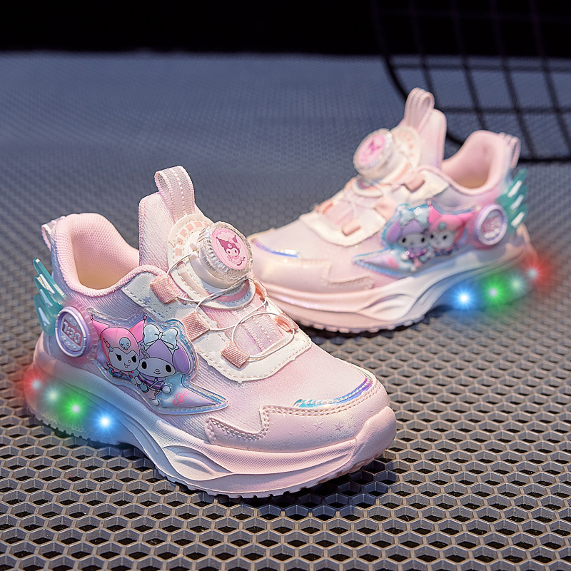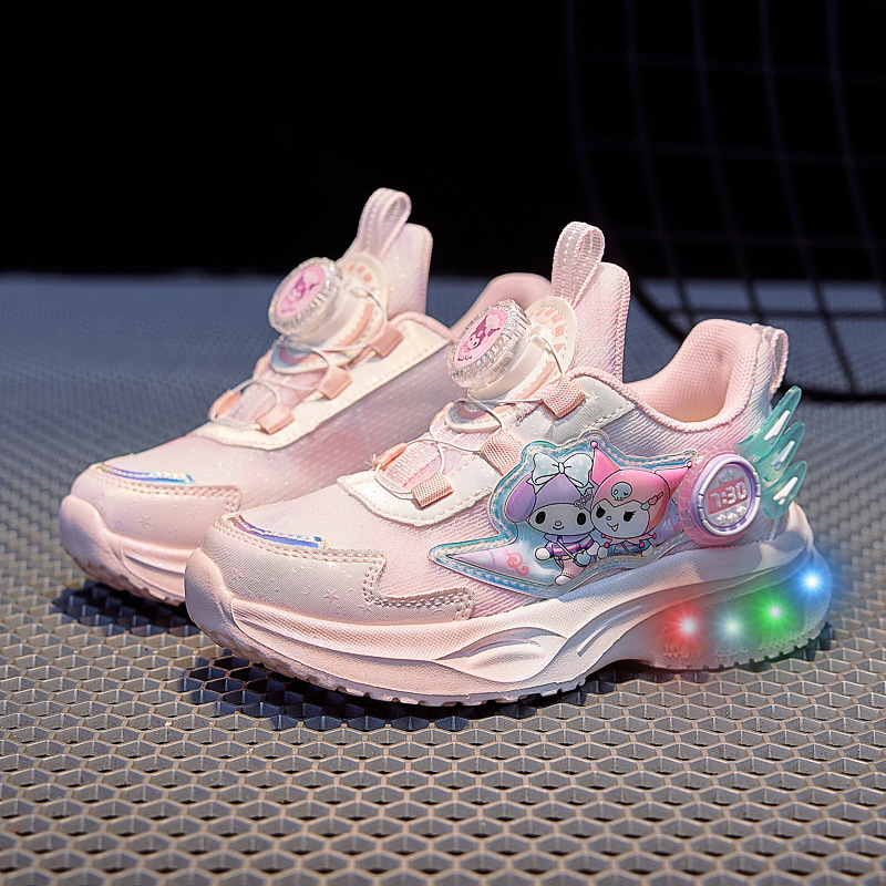 girls' luminous sneakers 2025 spring and autumn new rotating button soft bottom one piece dropshipping children's casual fashion mesh shoes
