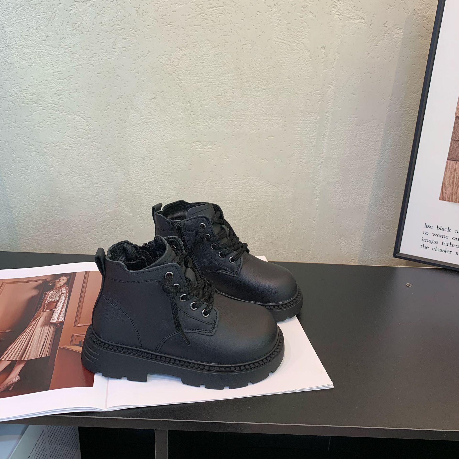girls' leather boots 2025 winter new fleece-lined warm martin boots korean boys fashion all-matching student fashion boots