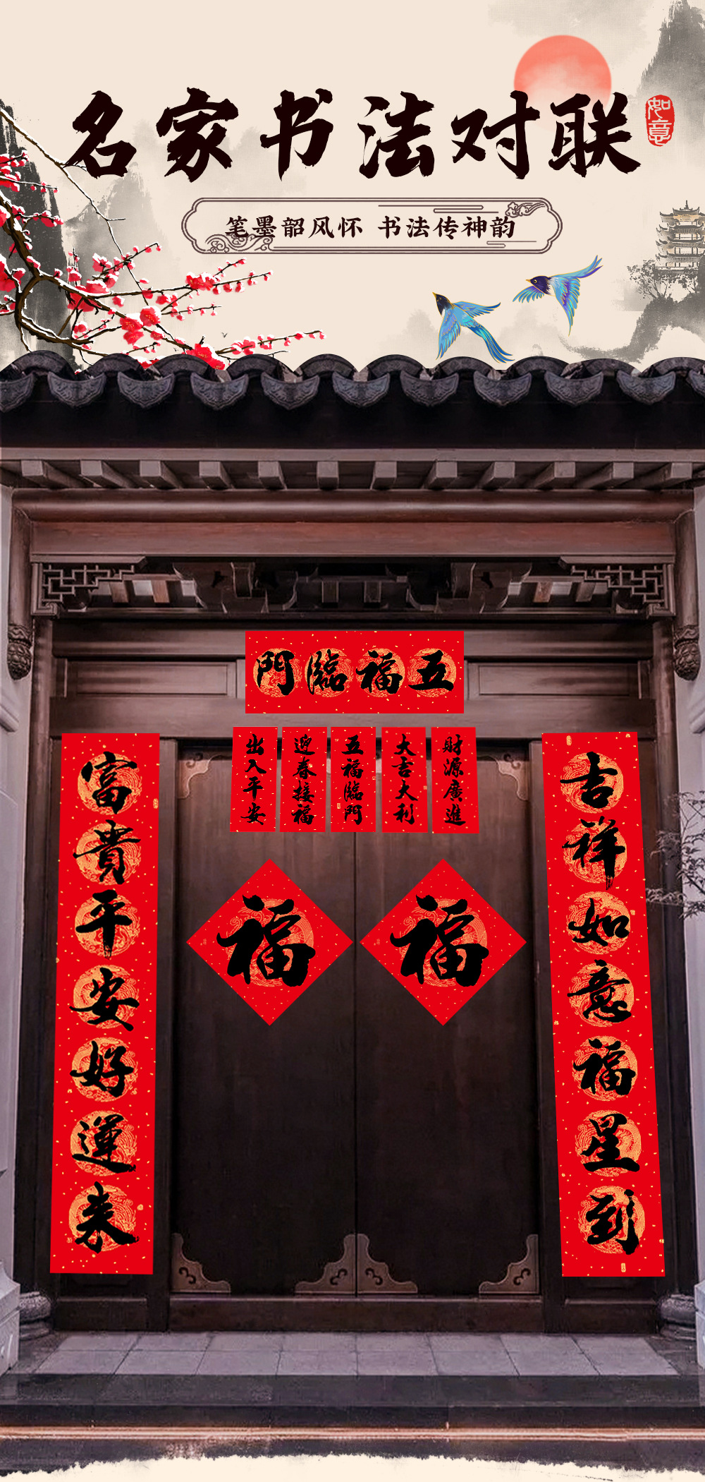 1.8m welcome the spring, welcome the wealth, receive the blessing, receive the wealth, and receive the happiness of the spring festival (real length 178 * 28cm)