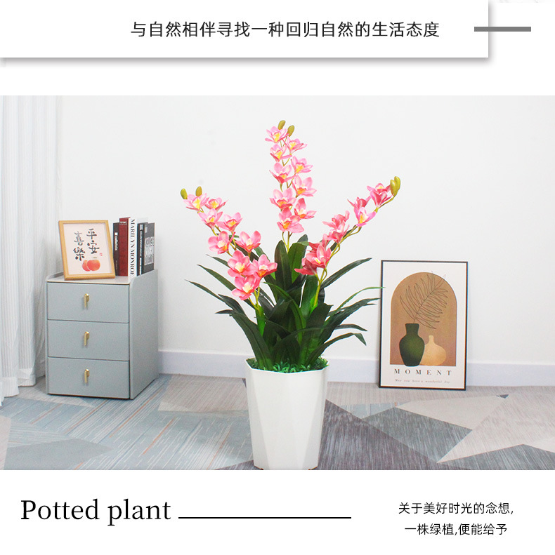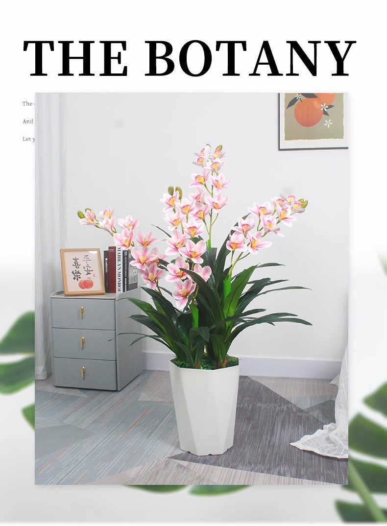 110cm three-pole cymbidium faberi flowers (pink) (without basin)