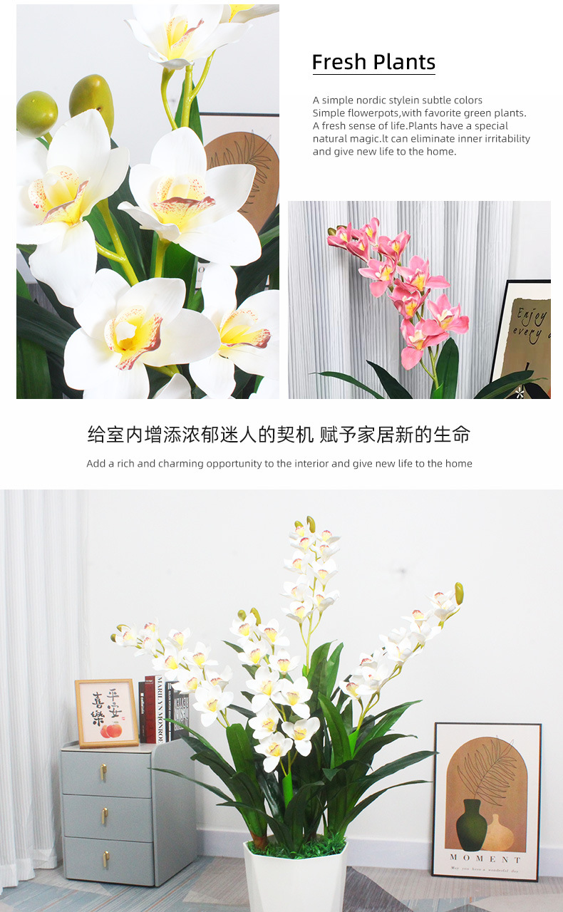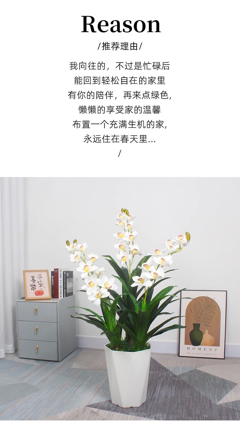 110cm three-pole cymbidium faberi flowers (white) (without basin)