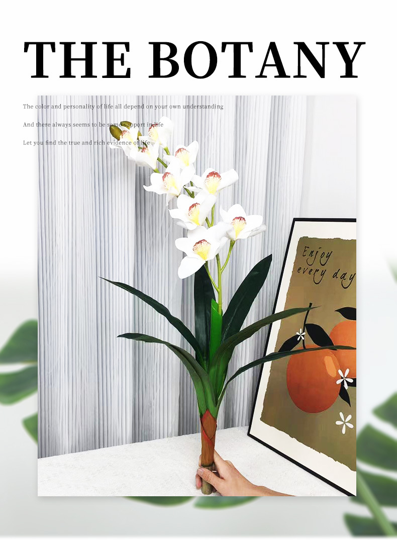 80cm single rod cymbidium faberi flowers (white) (without basin)