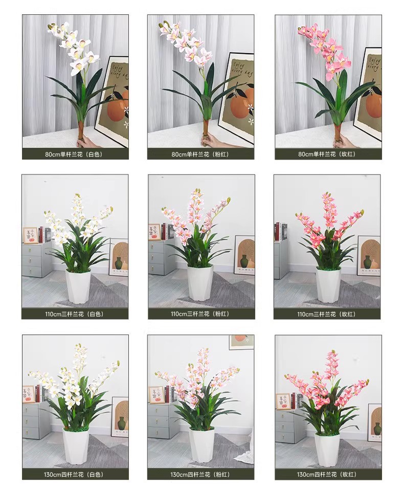 130cm four-pole cymbidium faberi flowers (white) (without basin)