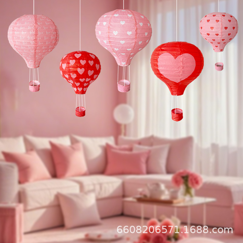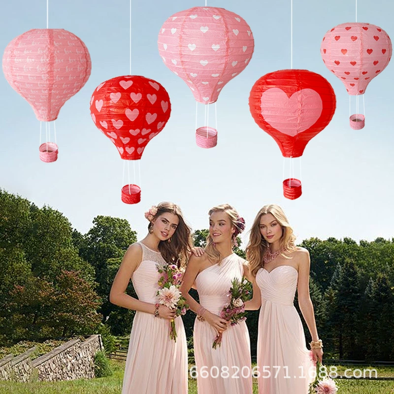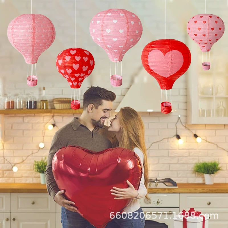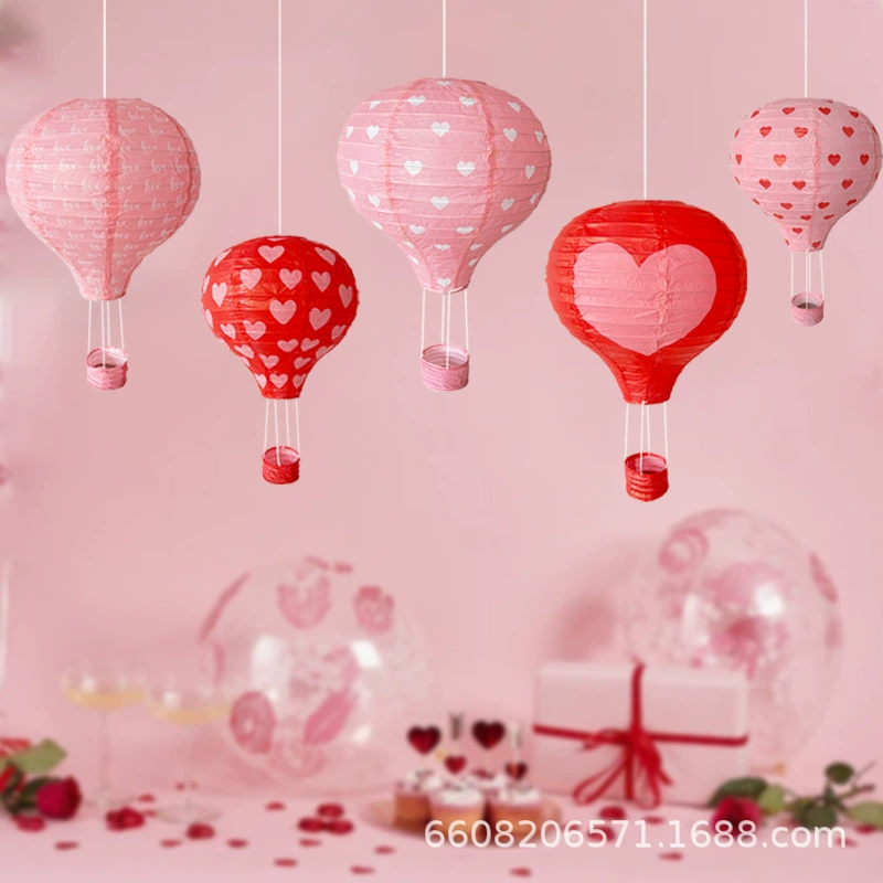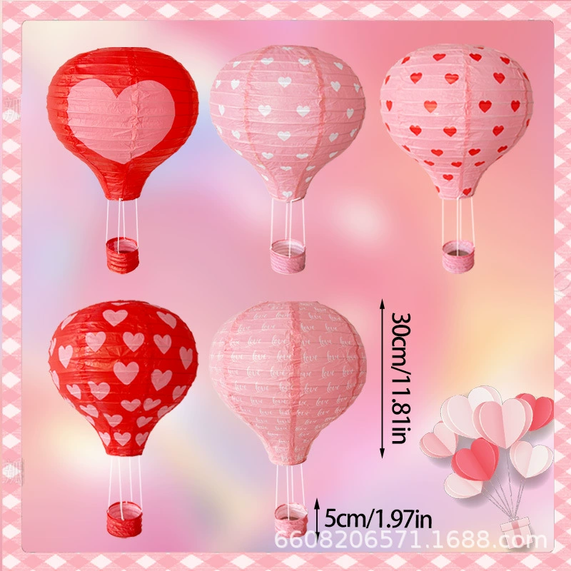 5pcs love heart printing hot air balloon chinese lantern