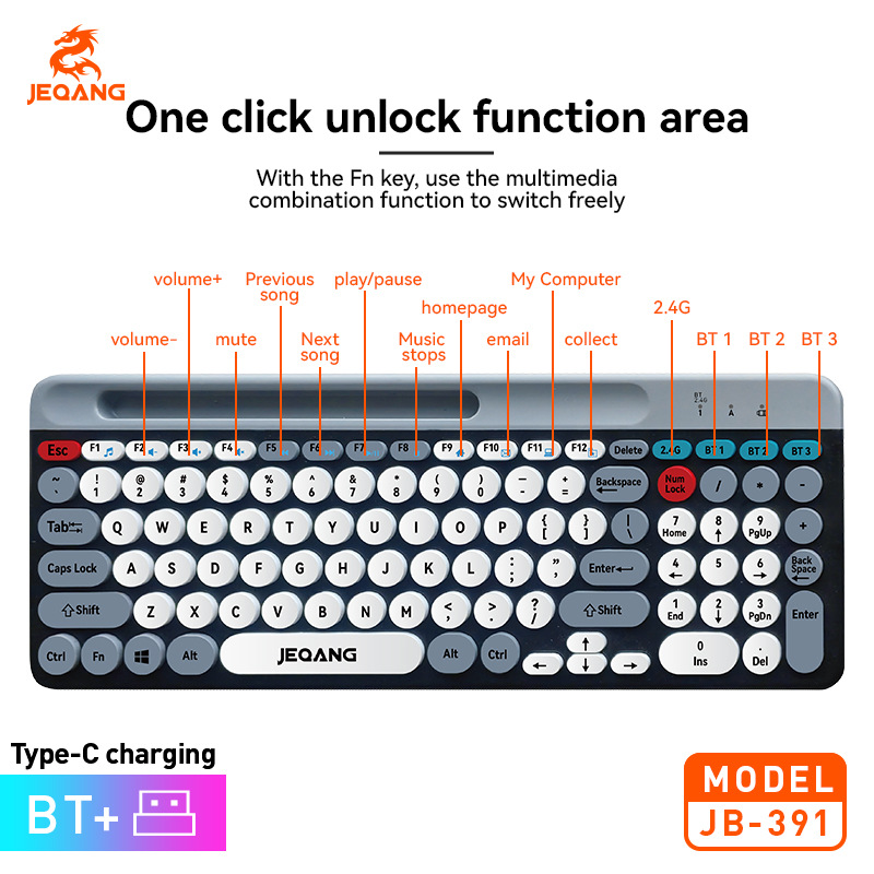 wireless dual-mode keyboard desktop computer notebook universal round key fashion color matching with card slot