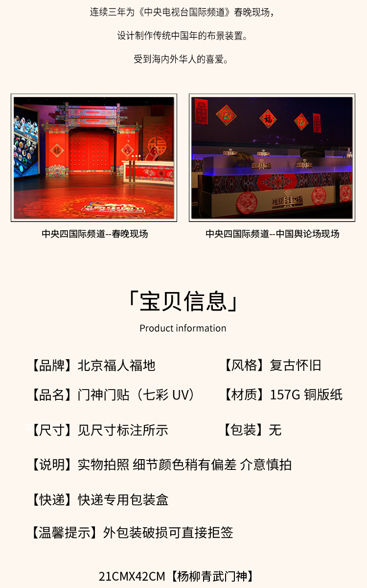 21 * 42cm yang liuqing wu door-god