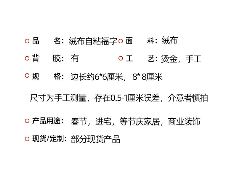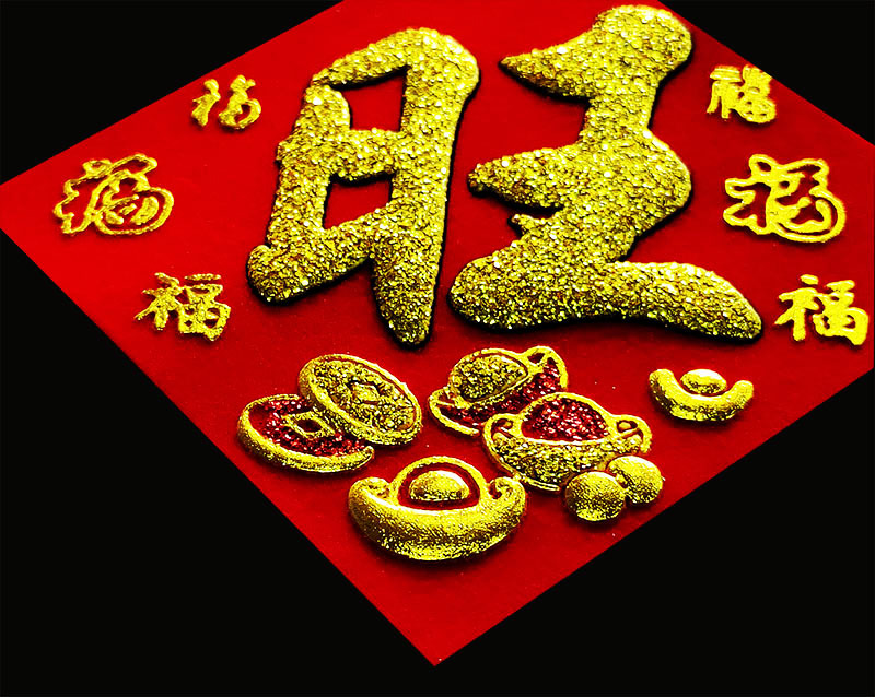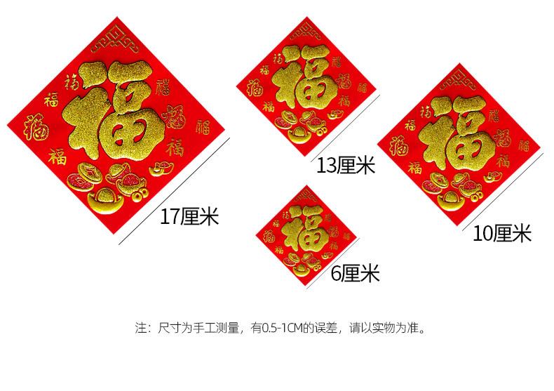gold powder fu character 6*6 (full adhesive) 50 pieces per pack