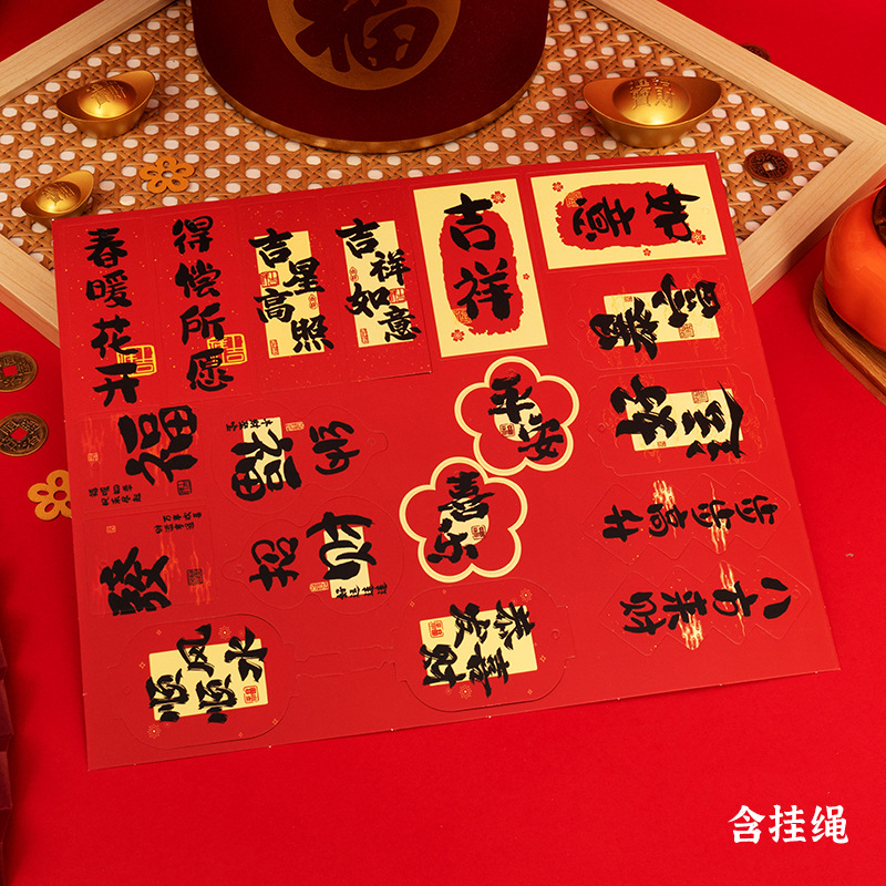 [02] chinese style calligraphy hanging card (18 pieces small elevator hanging card with buckle lanyard) 80057