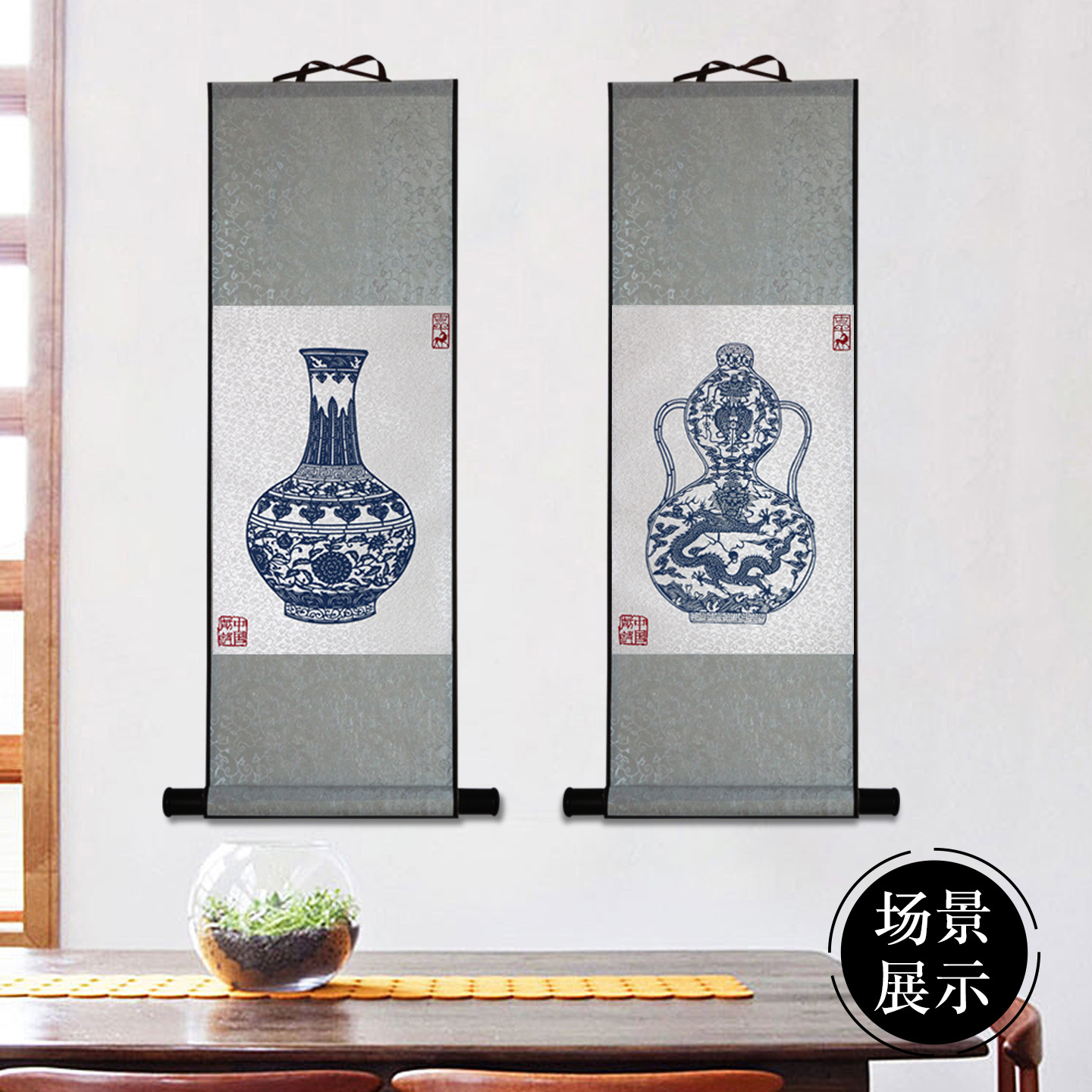 blue and white porcelain live and work in peace