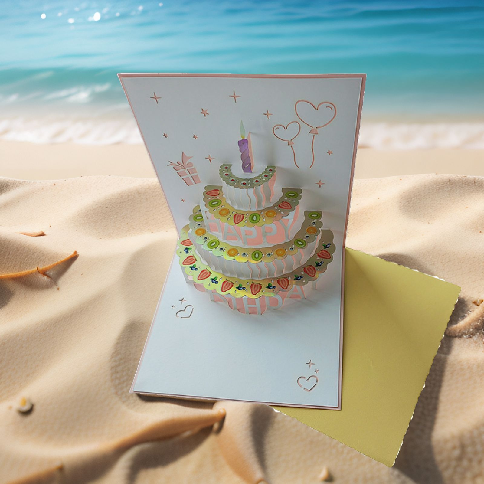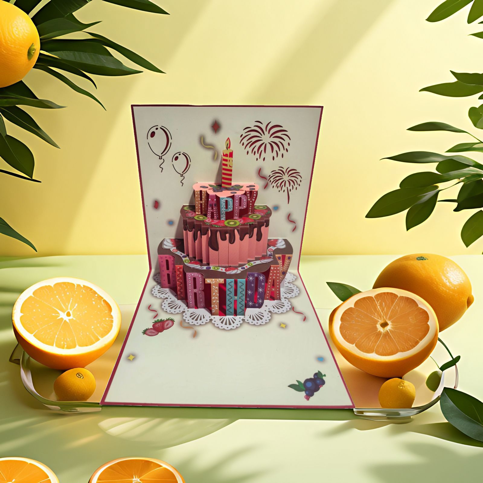 fruit four-layer cake greeting card