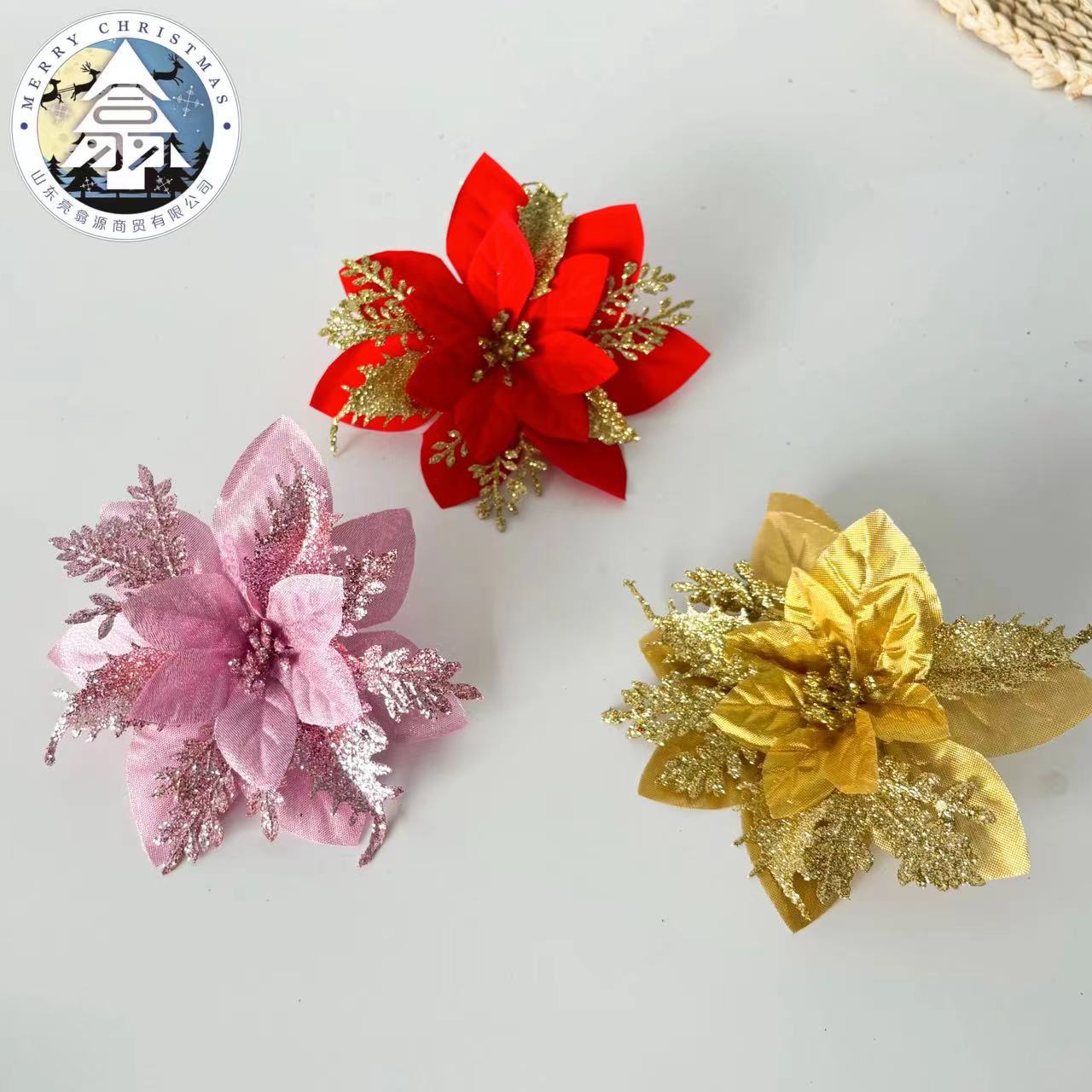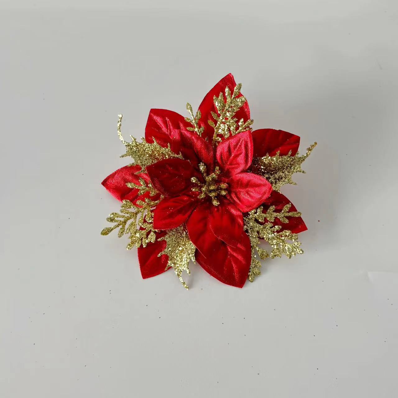 red fleece gold pink flower 14cm