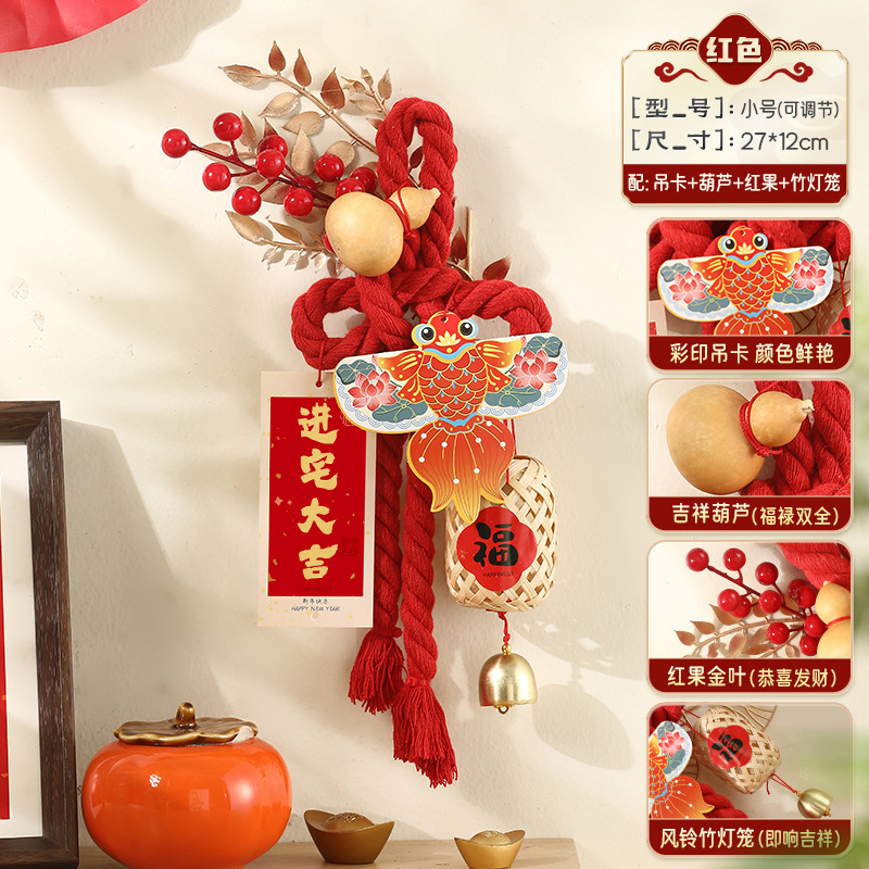 [large red] ten-character knot + hanging card + gourd + chinese hawthorn + bamboo lantern (simple diy for ornaments)