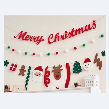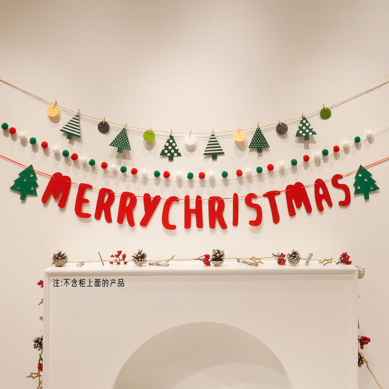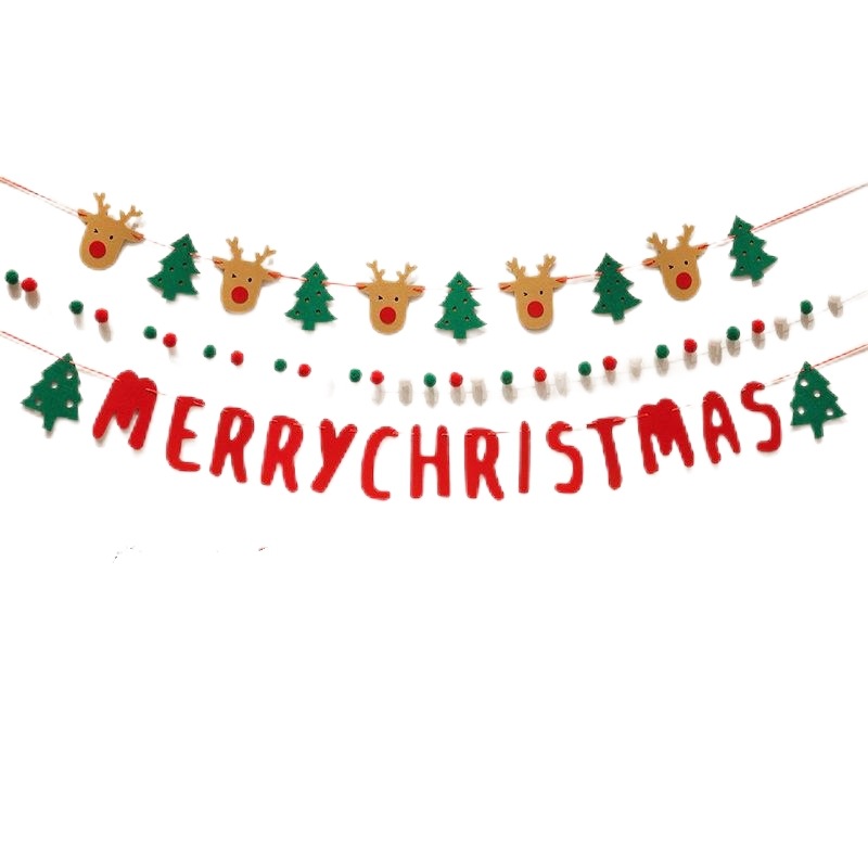 red big alphabetical flag + christmas tree and deer flag + fur ball