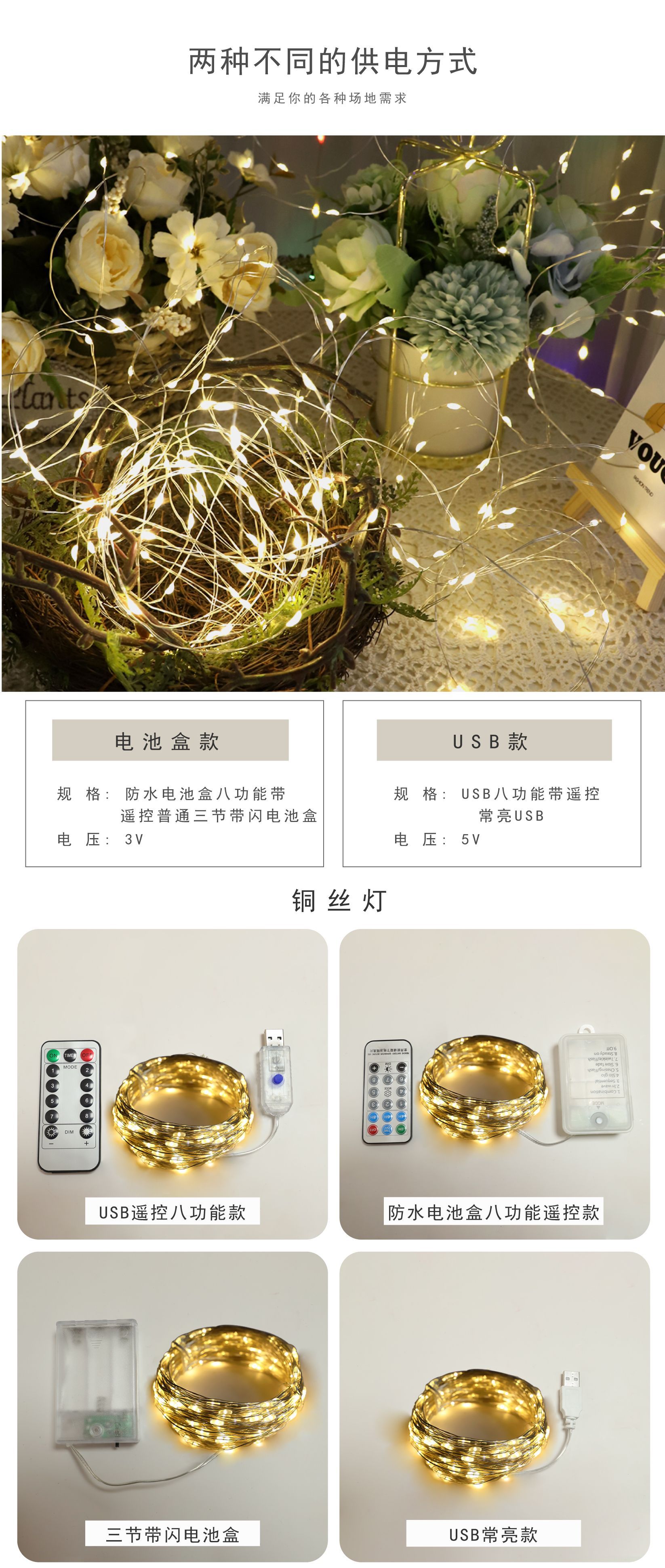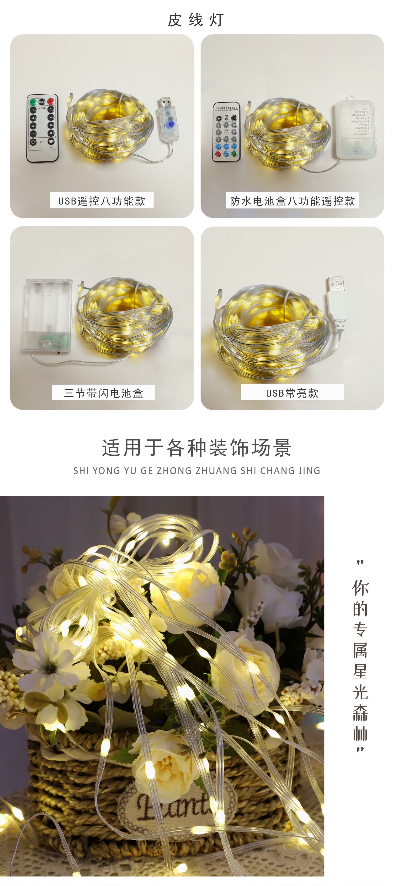 | 5 m 50 lights eight functions usb + remote control | CN¥ 6.28 | 999998 set available |