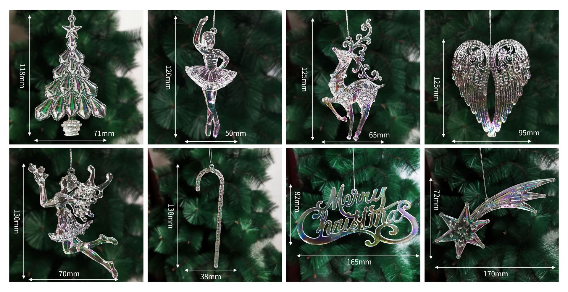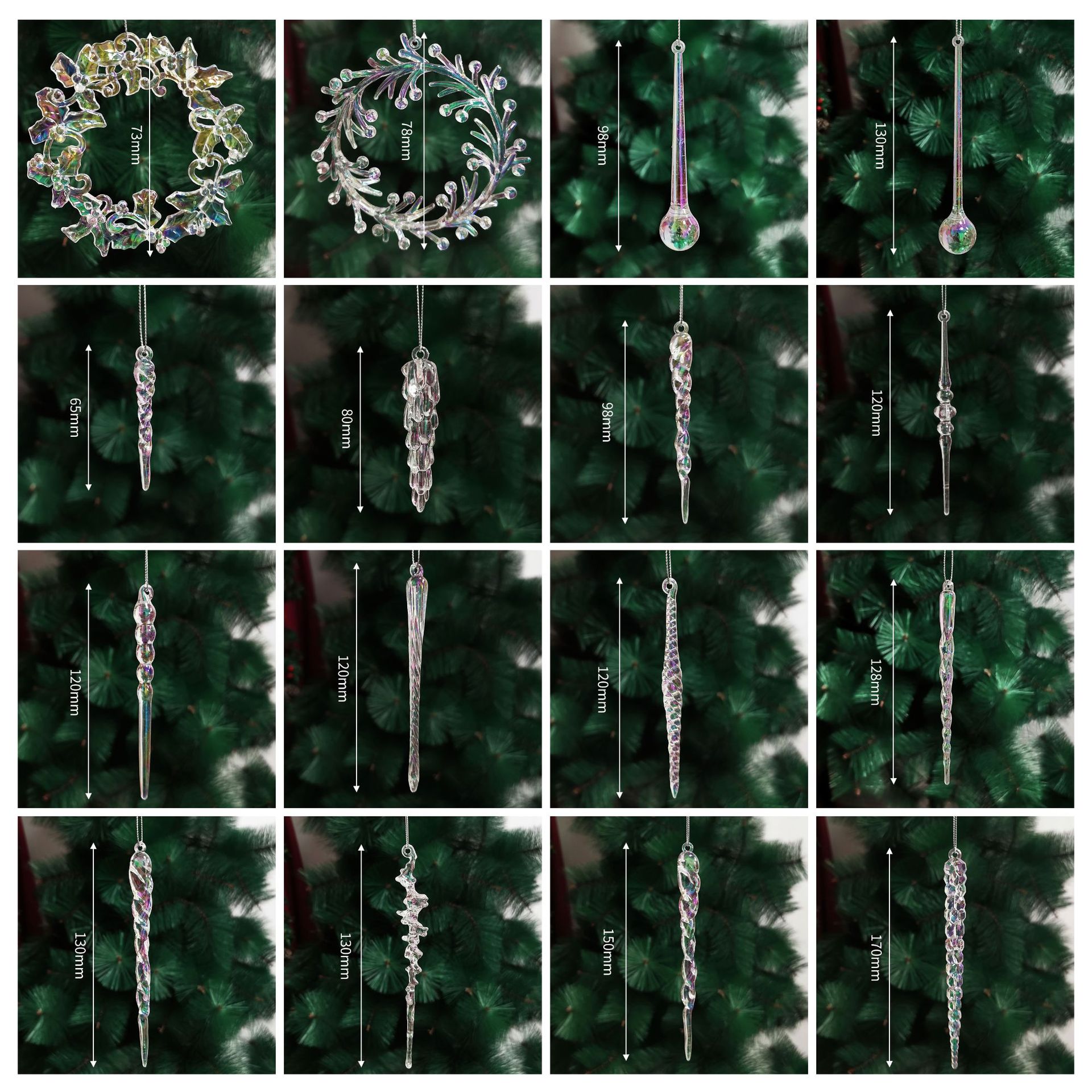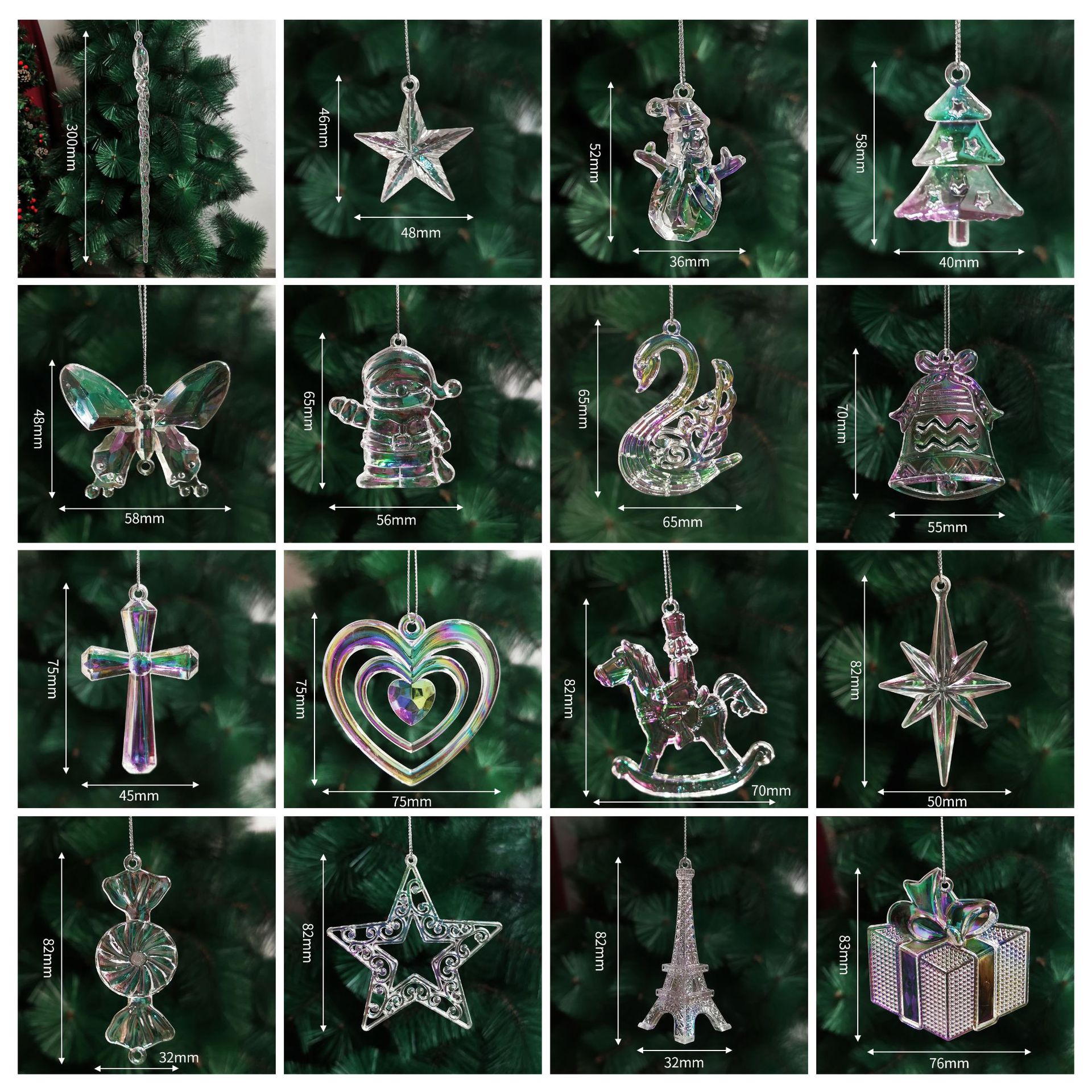 43mm electroplated colorful snowflake (12 pcs/pack with bulk line)