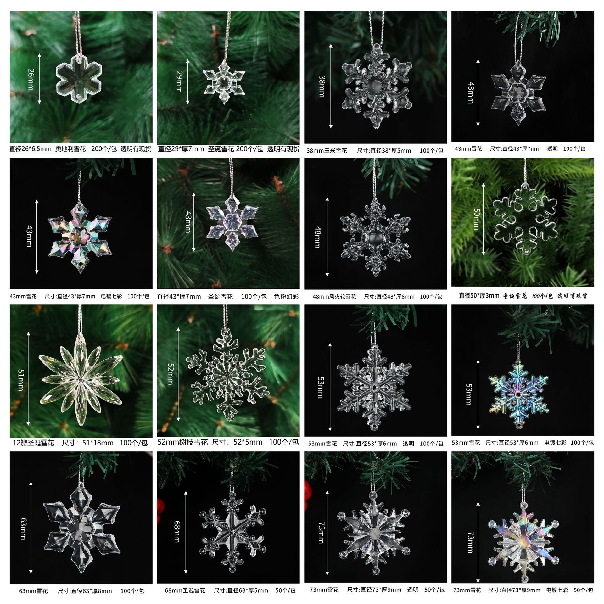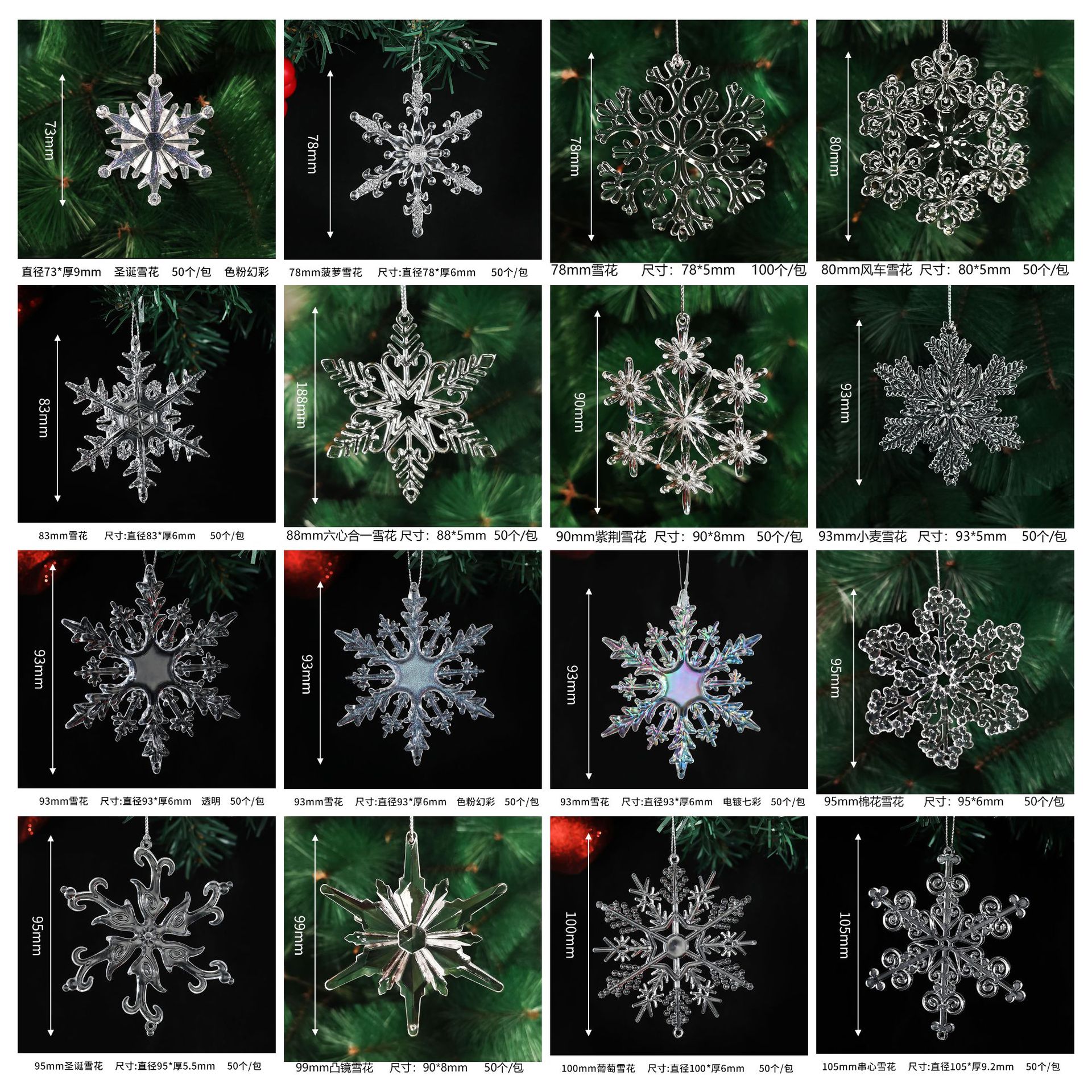43mm christmas snowflakes (12 pcs/pack with bulk line)