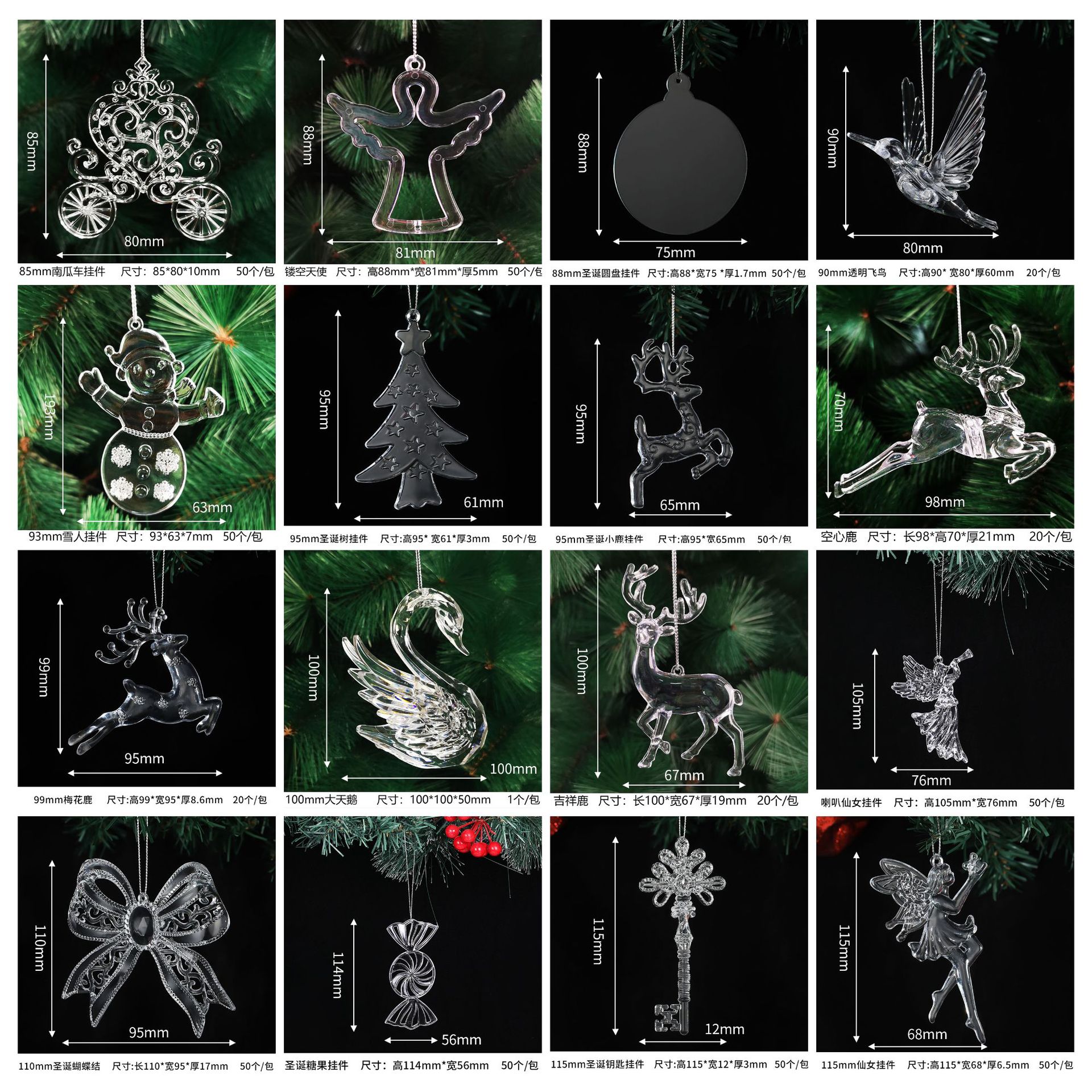 115mm christmas key pendants (6 pieces per pack with bulk line)