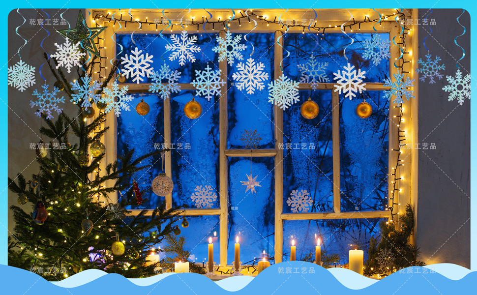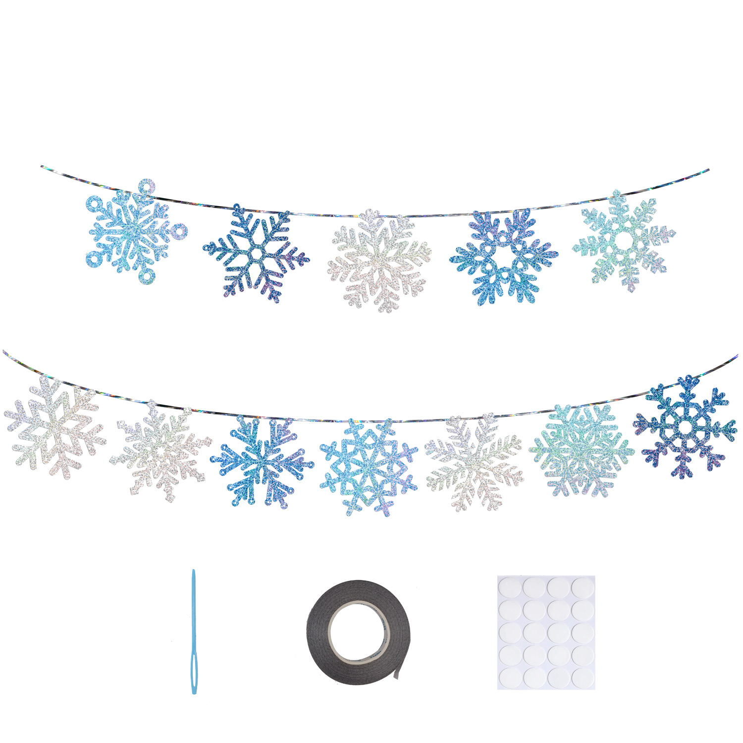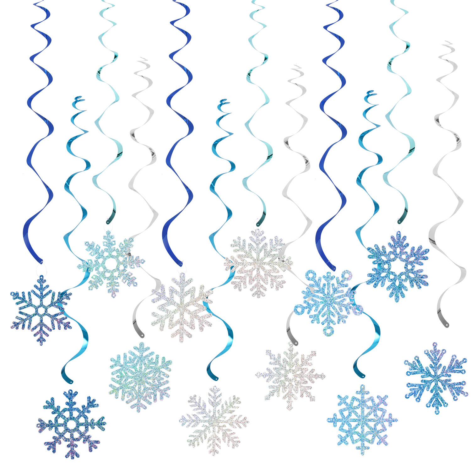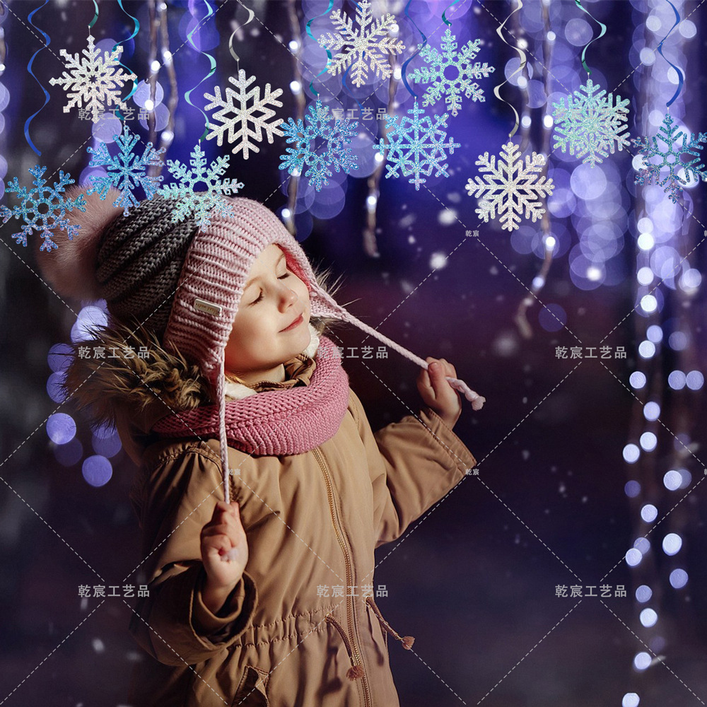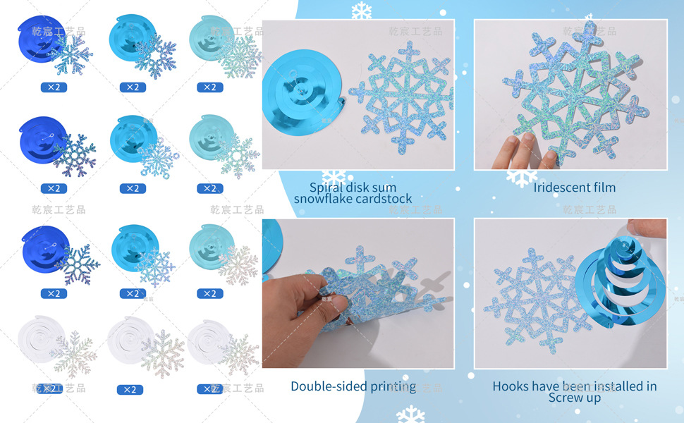 blue snowflake hanging flag (12 snowflakes)