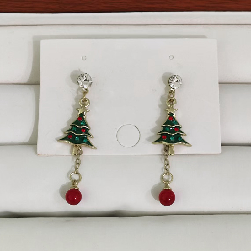 d0495 christmas tree pendant earrings-silver