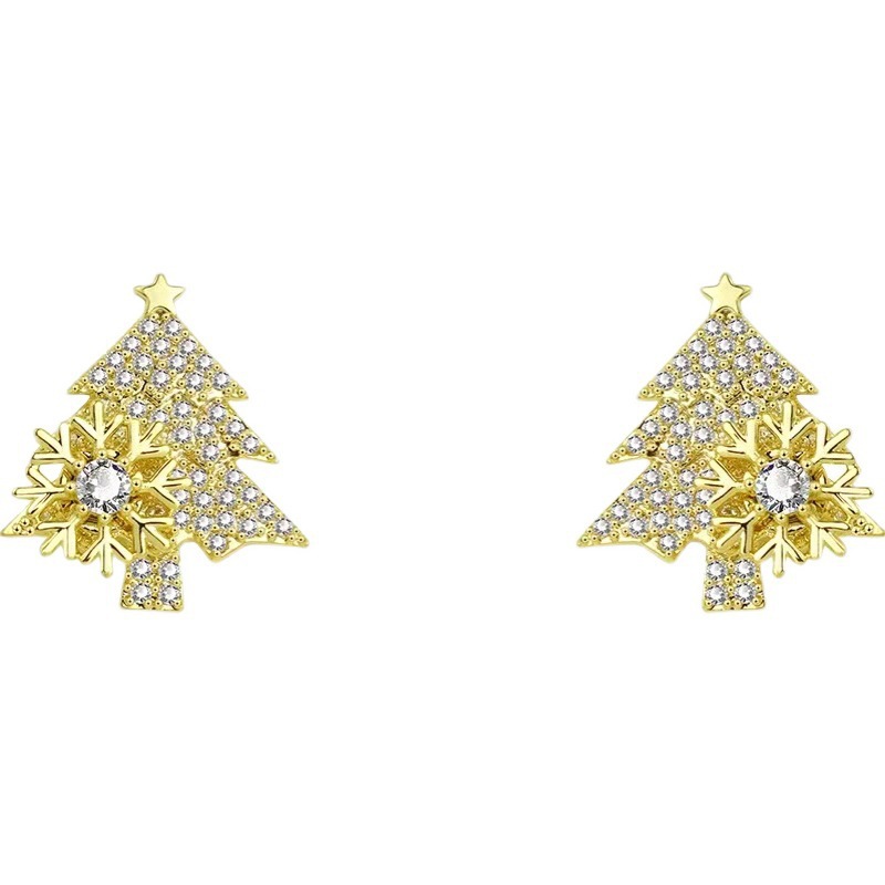 d0495 christmas tree pendant earrings-gold