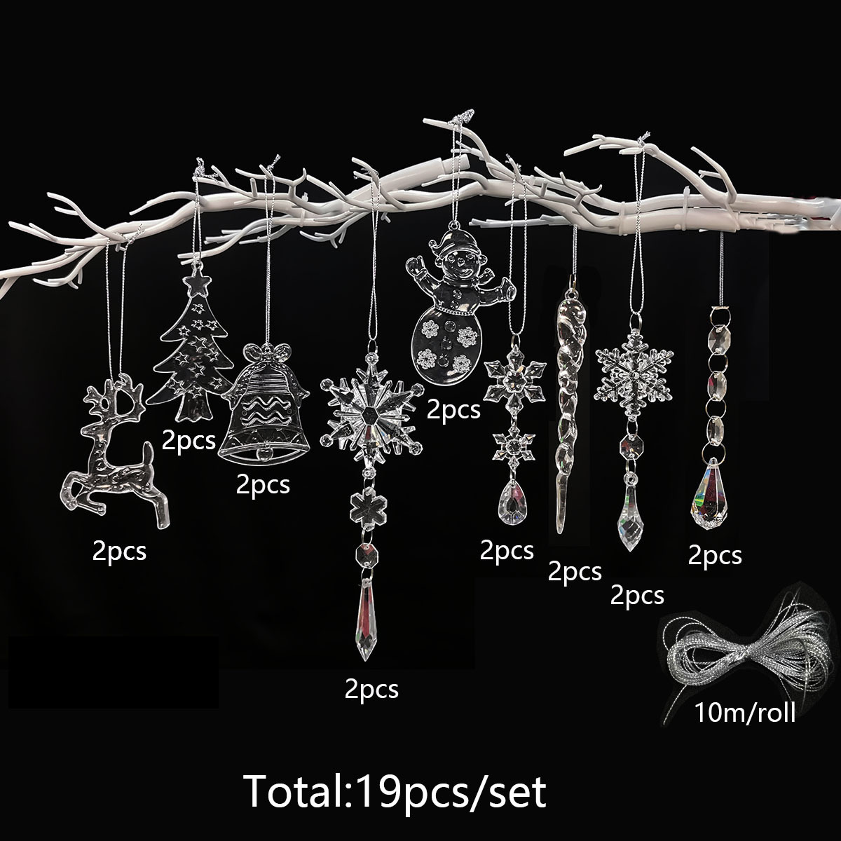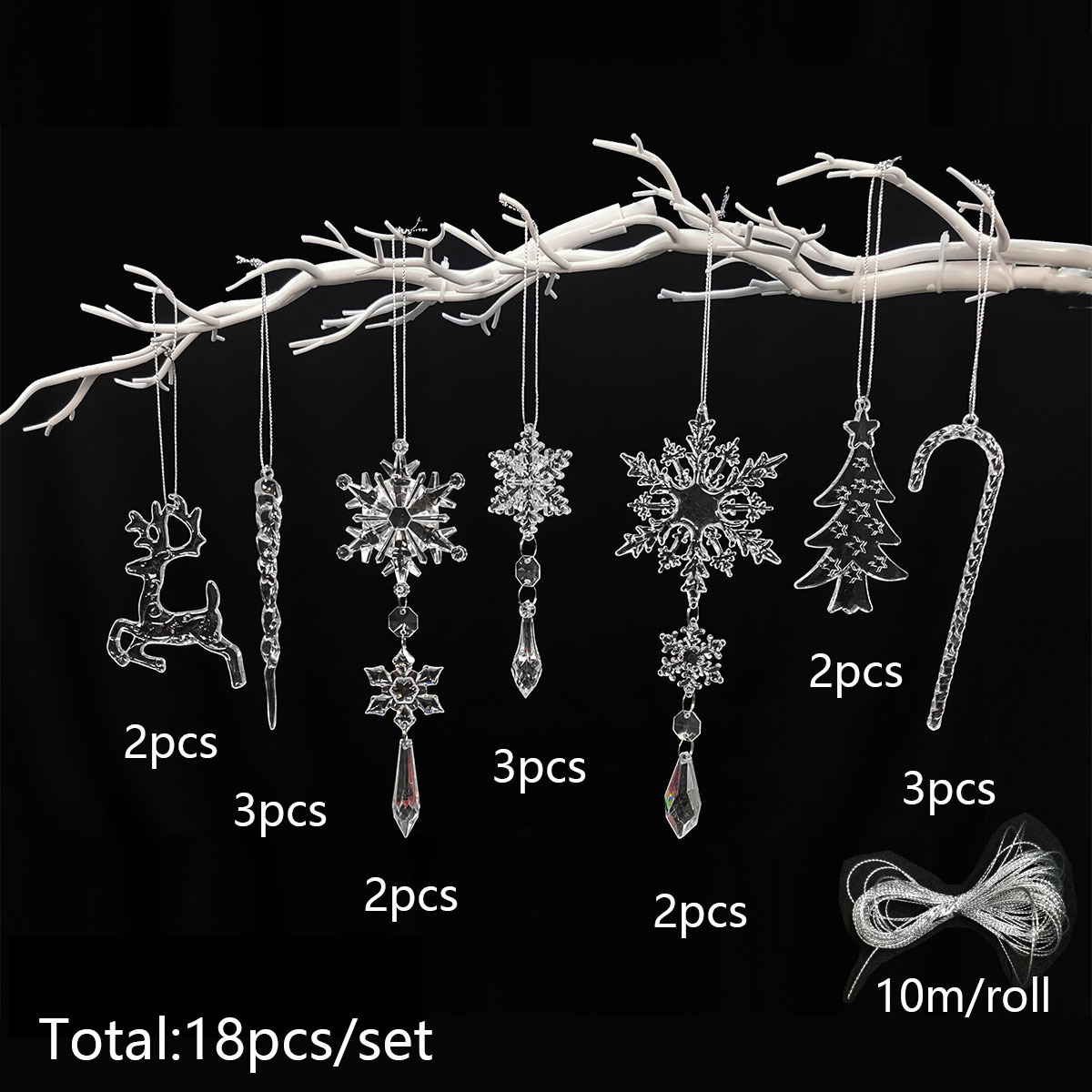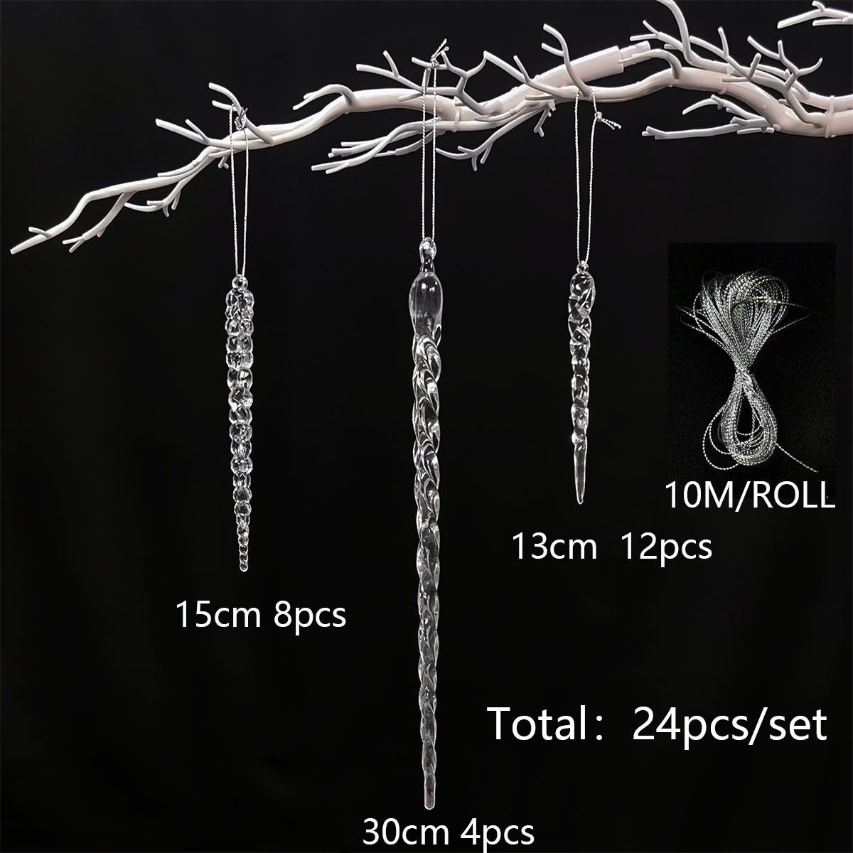 c set: 3 icicle sets (24pcs +1 bundle of 10 m silver thread)
