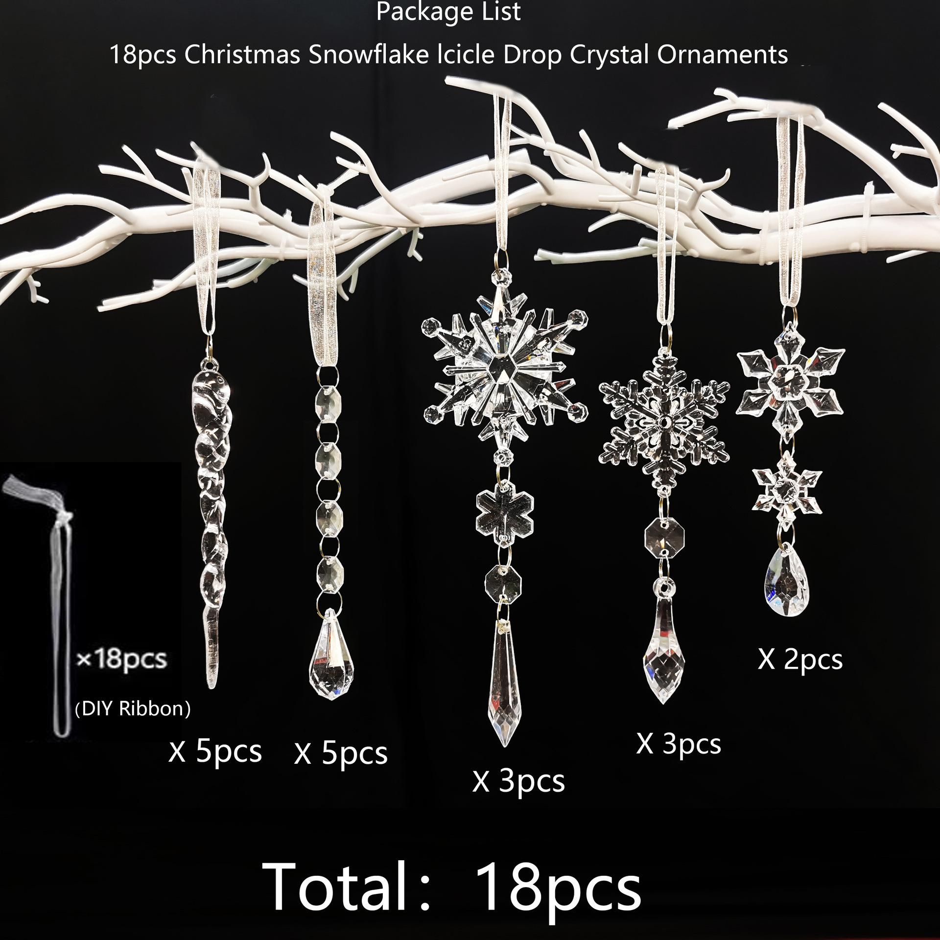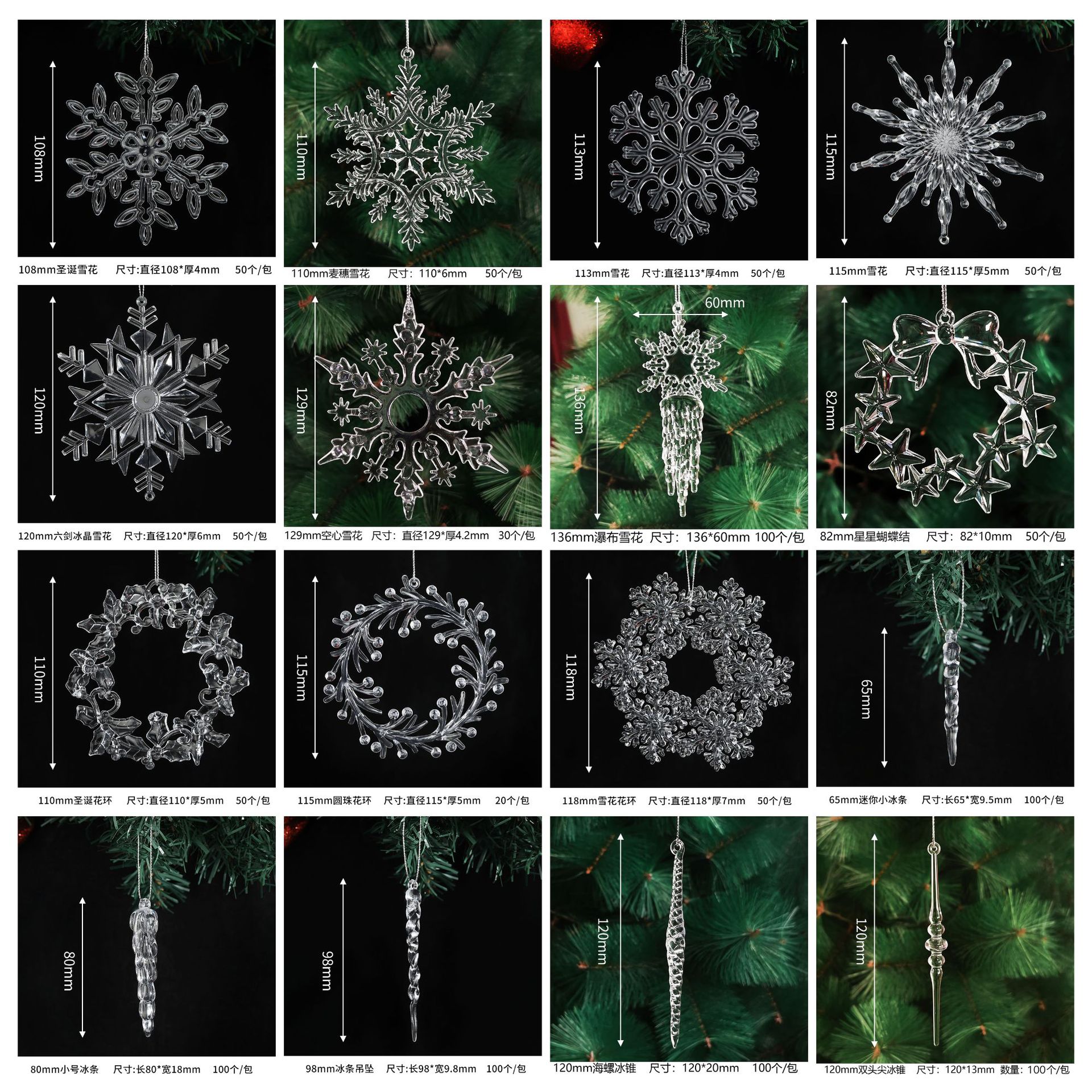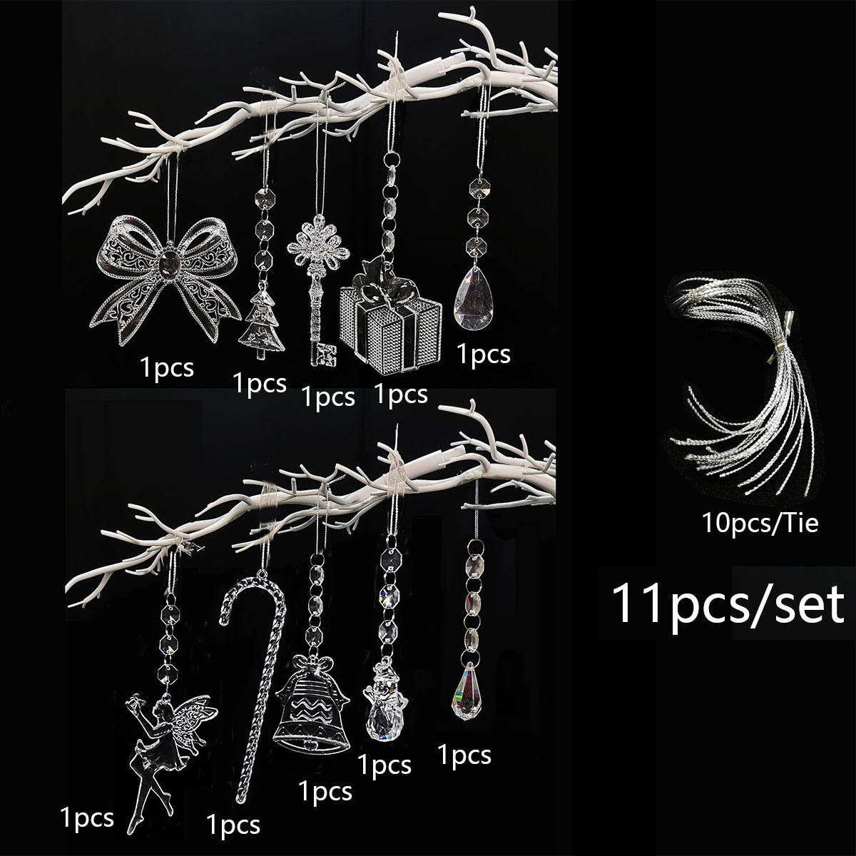 c set: 3 icicle sets (24pcs +1 bundle of 10 m silver thread)