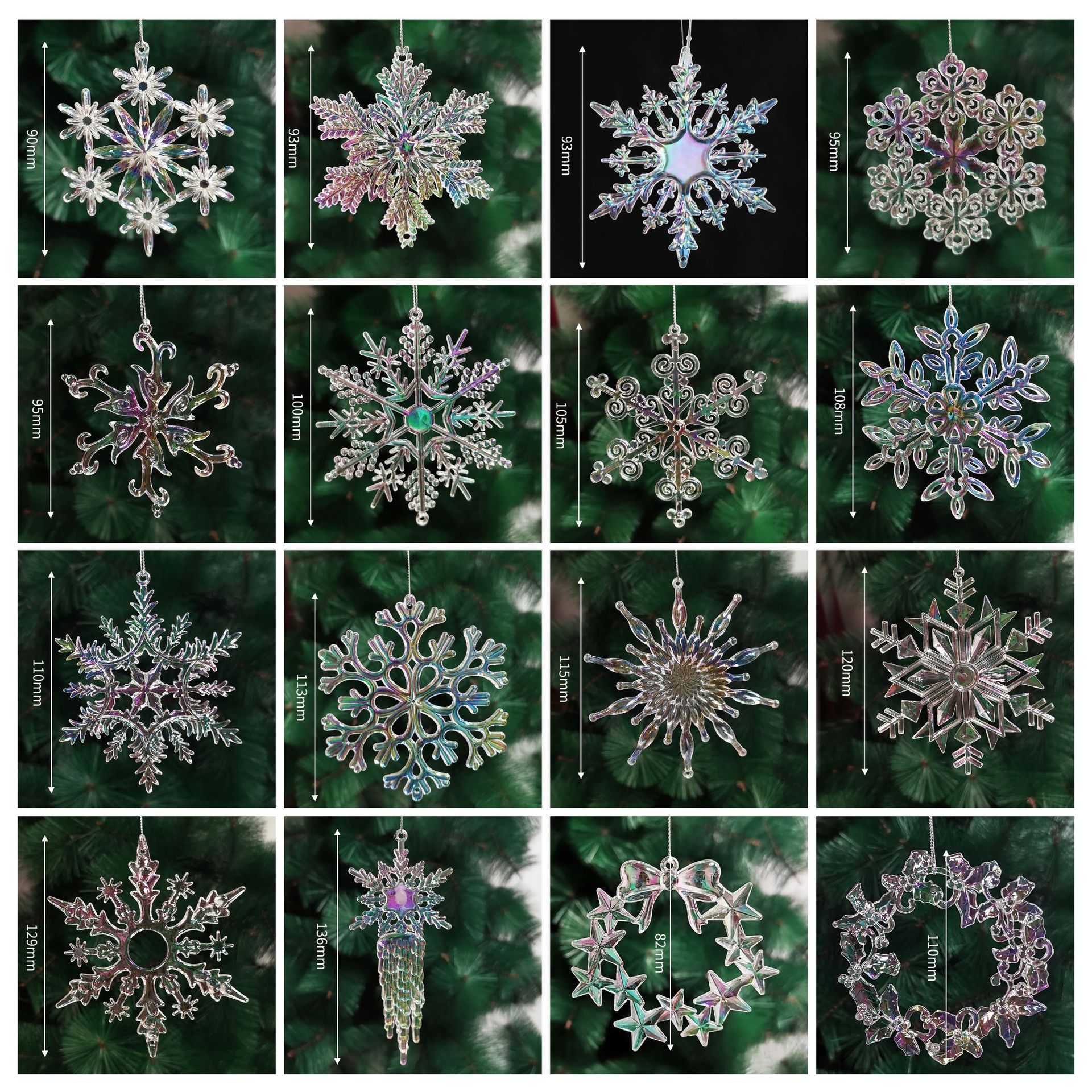 a set-blue: snowflake beads string set (10 pieces in each set, 2 pieces in each style, matching ribbon)