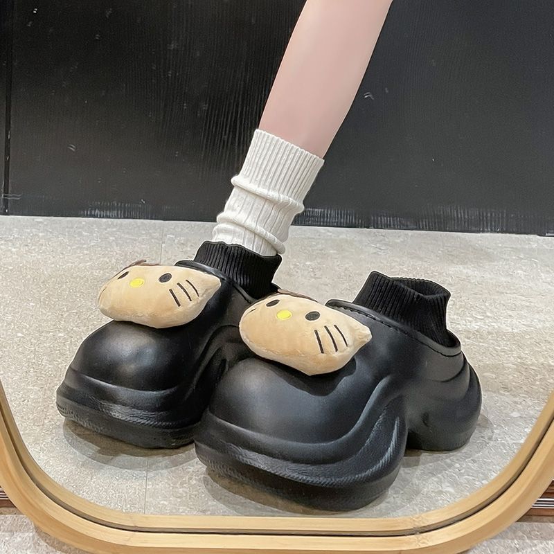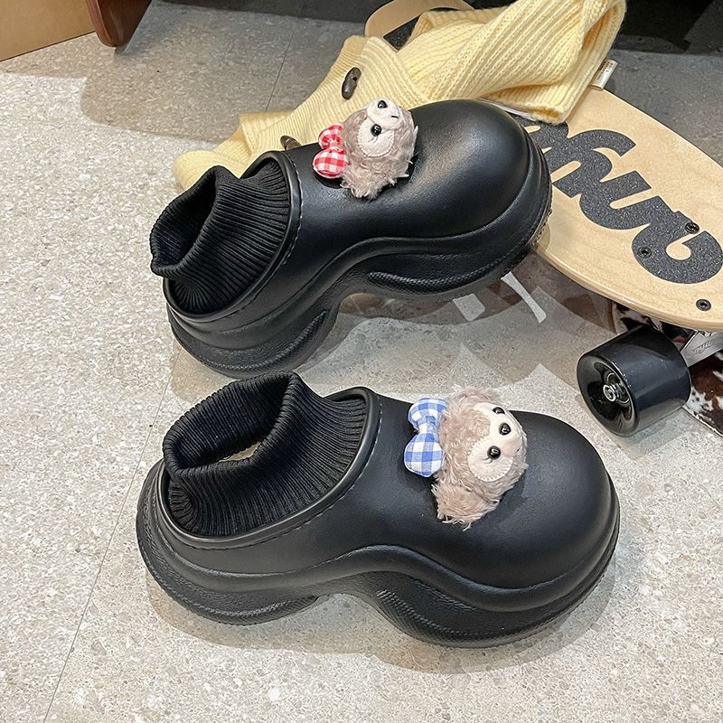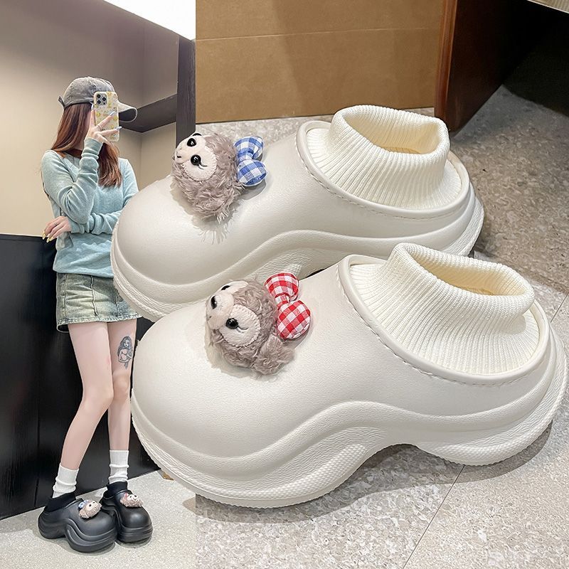 waterproof cotton slippers women's winter cartoon cute fleece-lined warm non-slip home wear thick bottom increased by ankle wrap cotton shoes