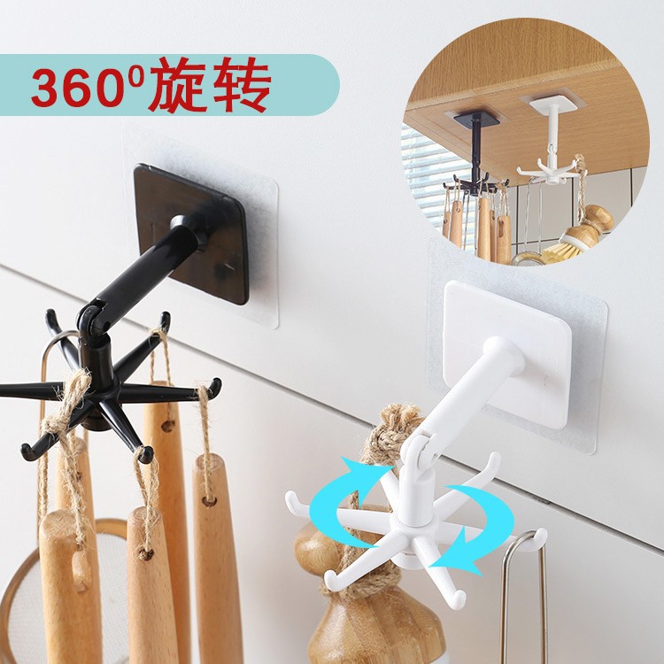 rotatable hook punch-free wall-mounted kitchen spatula storage wall rack household strong adhesive holder