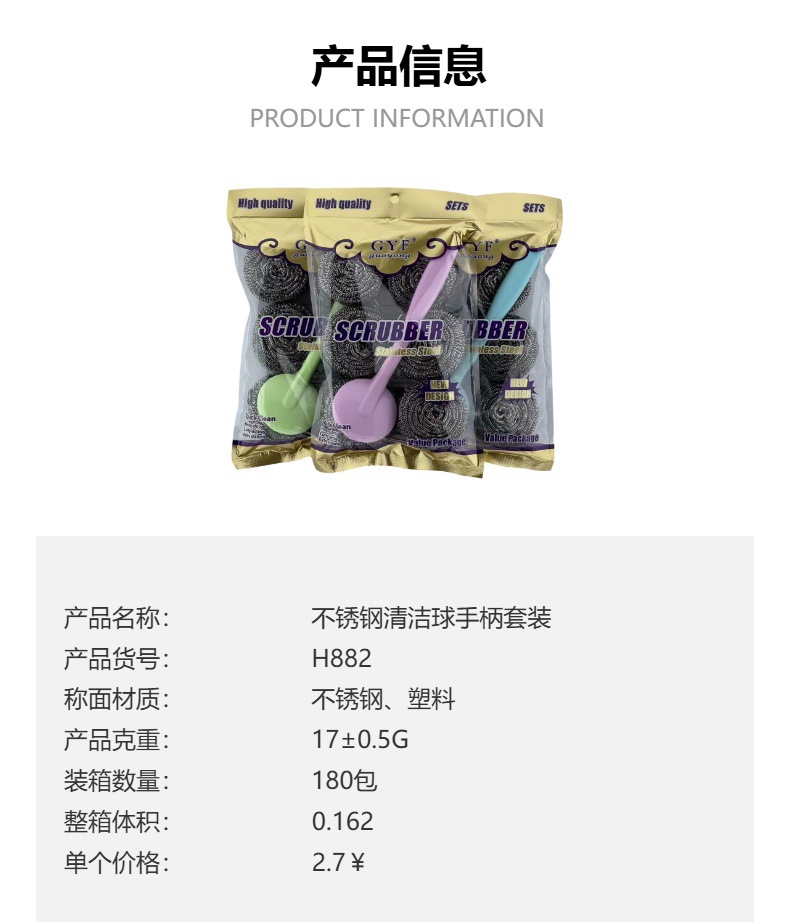 factory wholesale stainless steel steel wire ball brush pot handle wok brush set kitchen dishwashing decontamination cleaning dedicated fantastic net