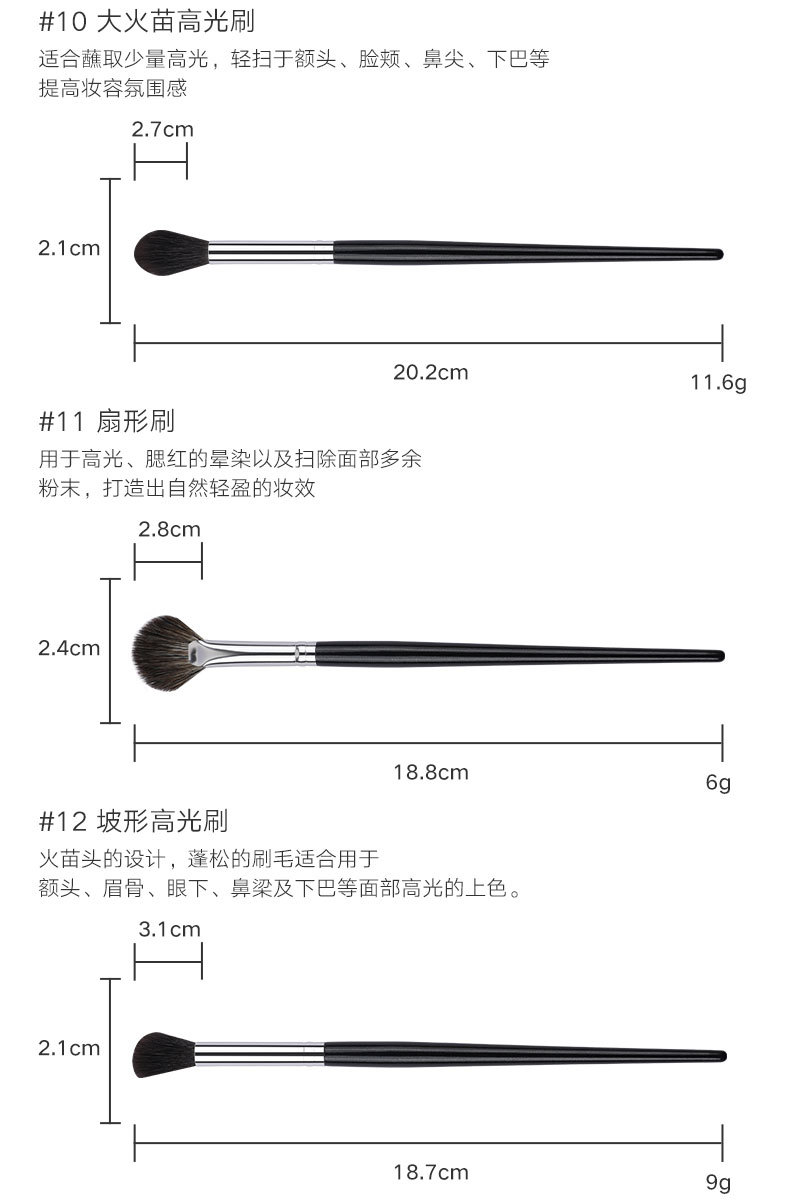 big flame highlight brush [black wool] opp bag