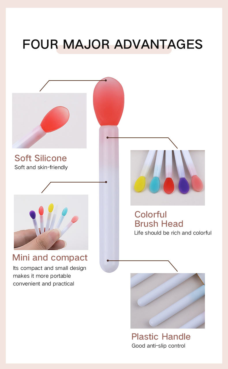 [pink silicone end] white penholder plastic handle lip brush