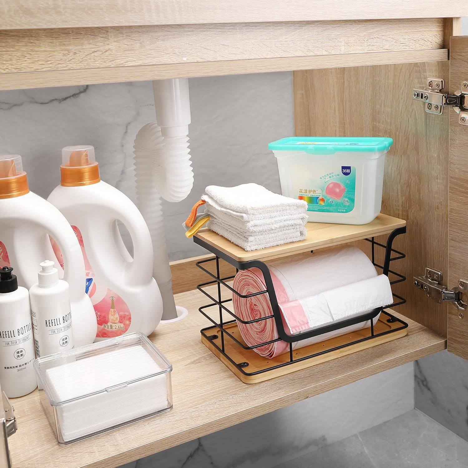 cross-border new arrival household multi-functional wall-mounted kitchen fruit seasoning storage basket organizing rack garbage bag storage rack