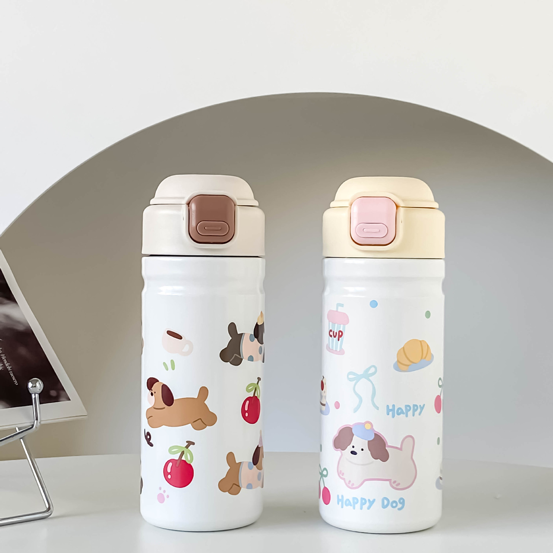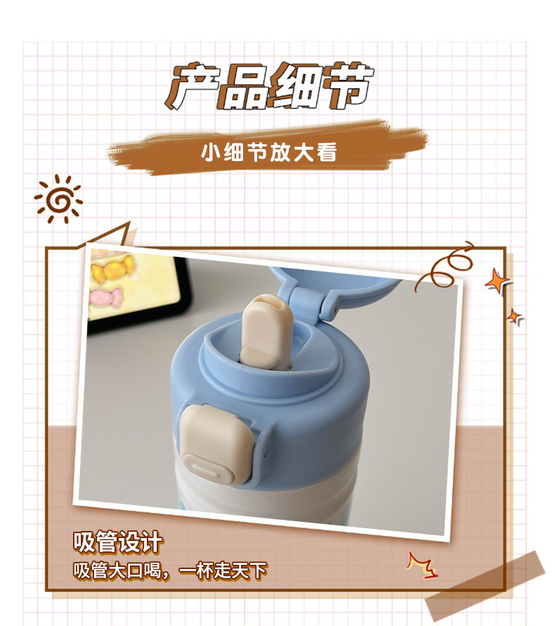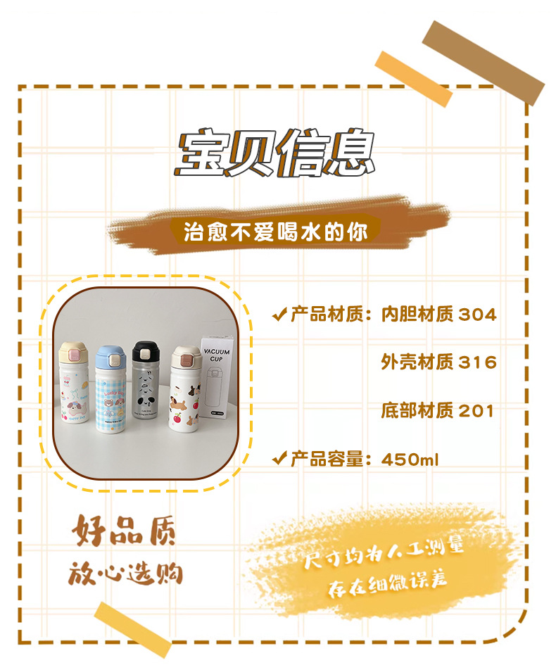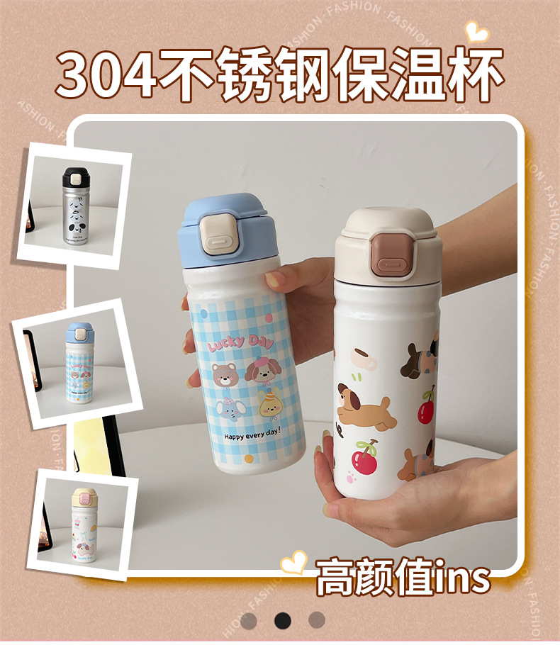 cartoon cute stainless steel vacuum cup 316 bounce cover press portable water cup children's accompanying office cup with straw