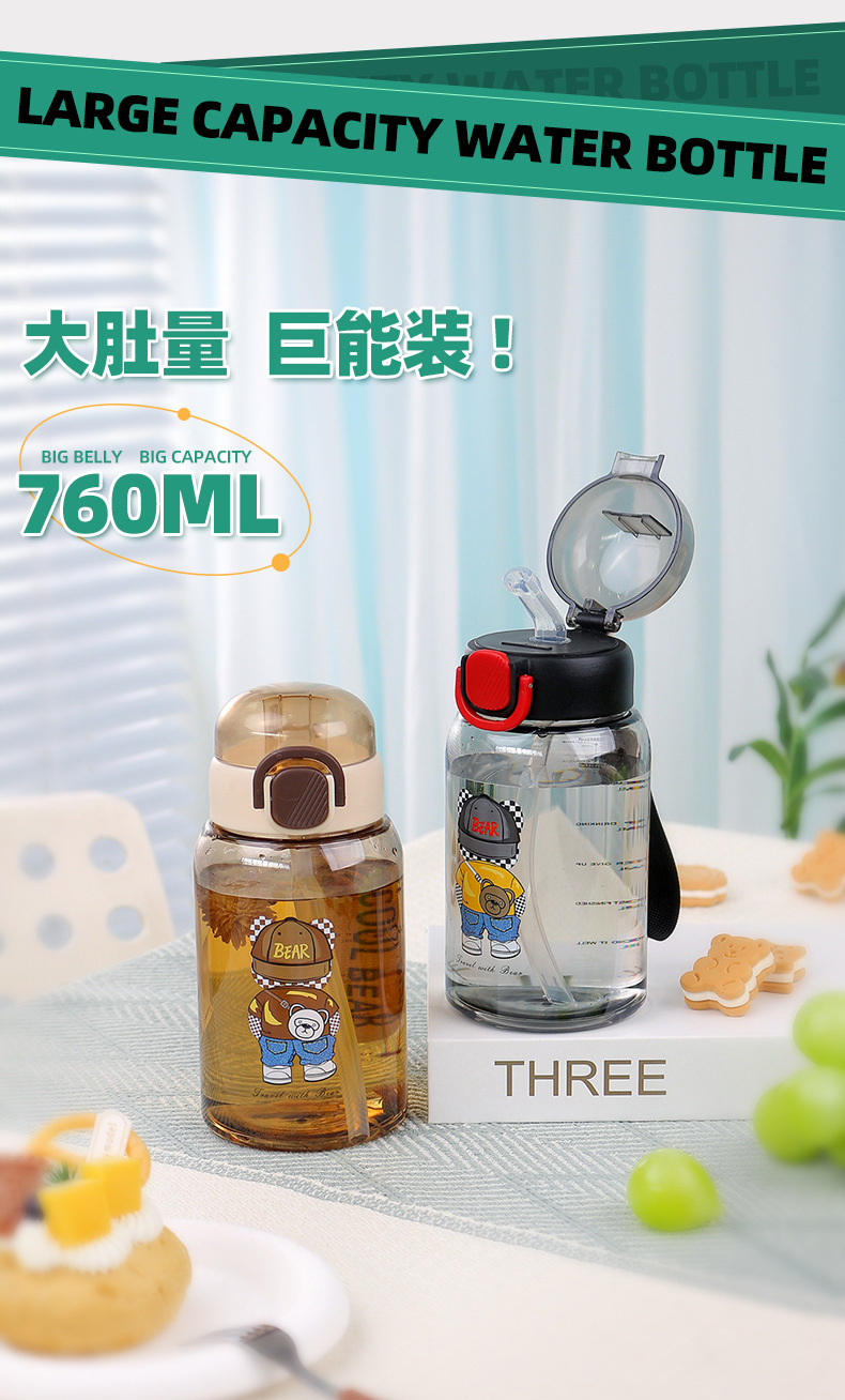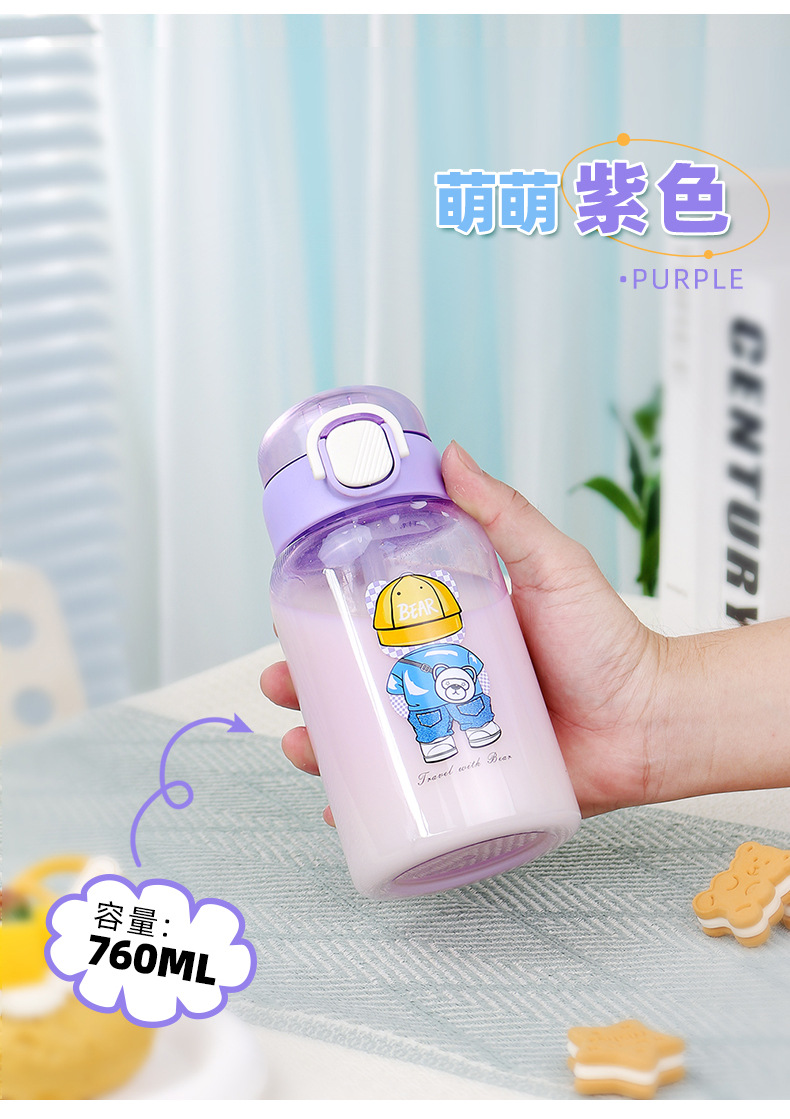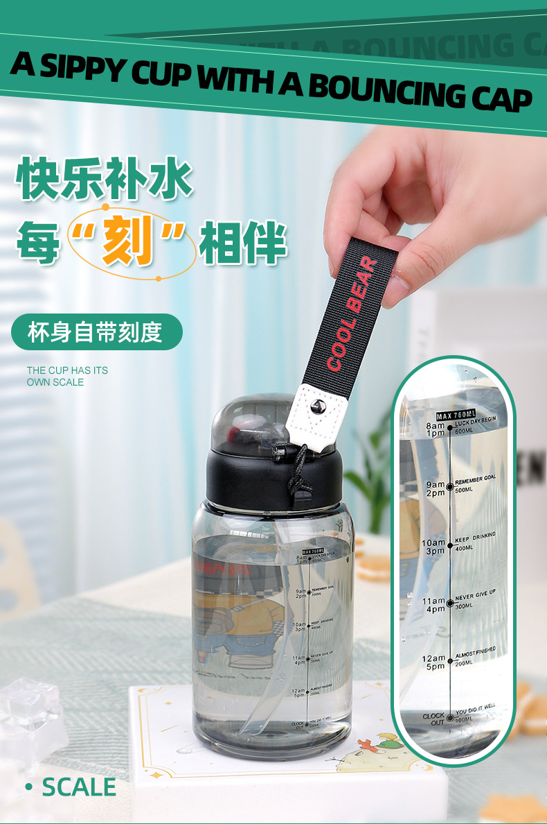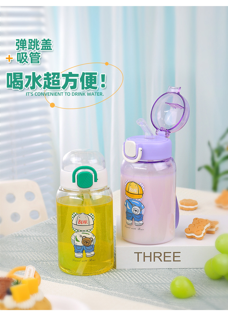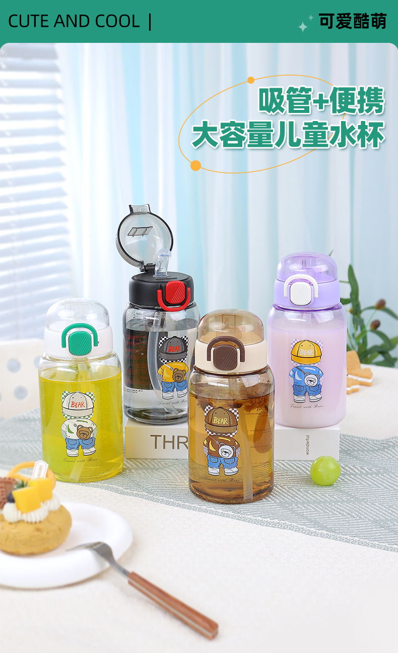 cartoon student bullet cup youth outdoor portable handle big belly straw plastic cup customizable creative straw cup